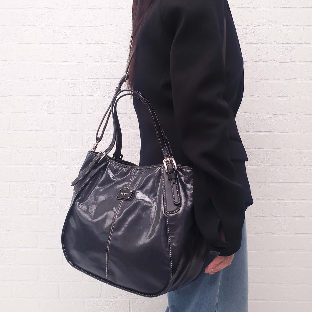 TOD'S TEAL PATENT AND BLACK LEATHER TOTE WITH CROSSBODY STRAP