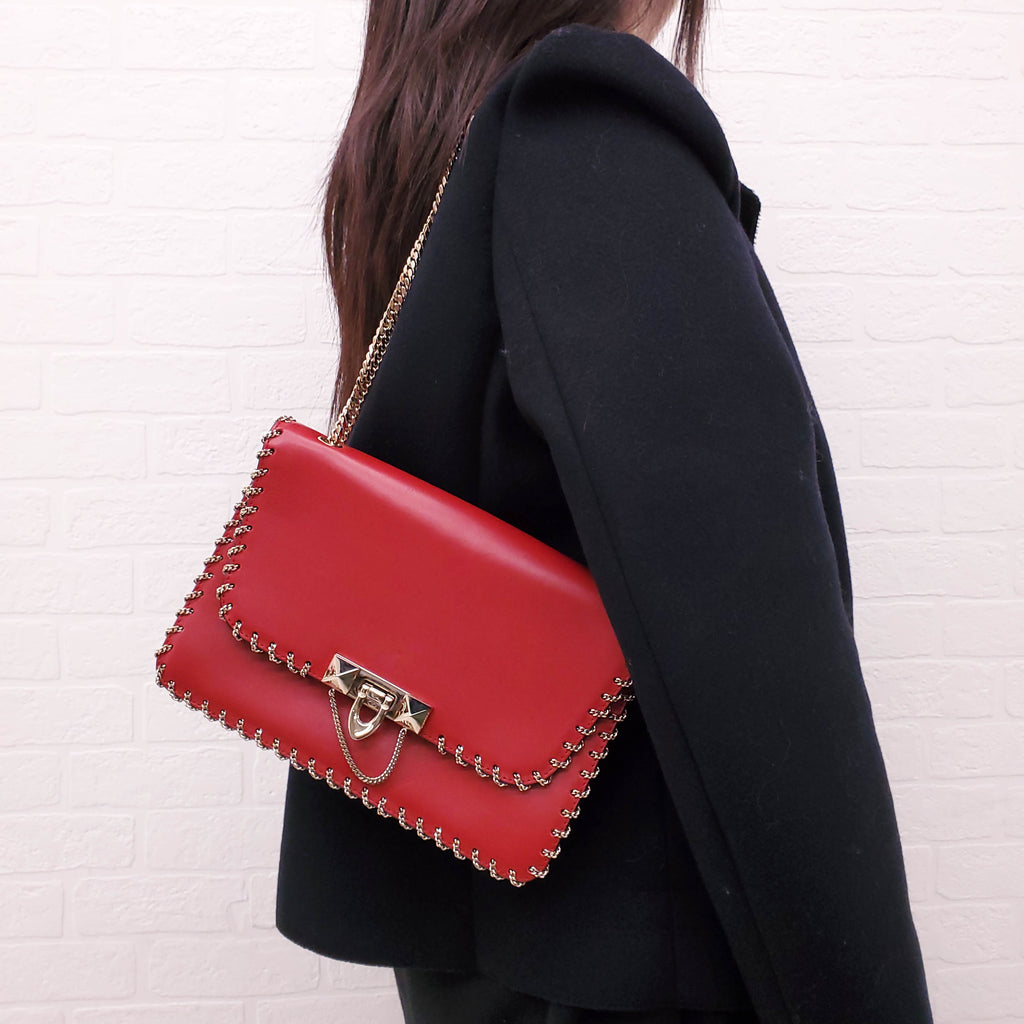 VALENTINO RED ROCKSTUD WITH GOLD CHAIN AROUND DETAIL