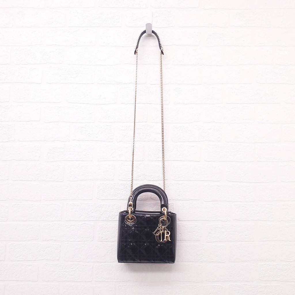 CHRISTIAN DIOR BLACK PATENT 'MINI LADY DIOR' BAG