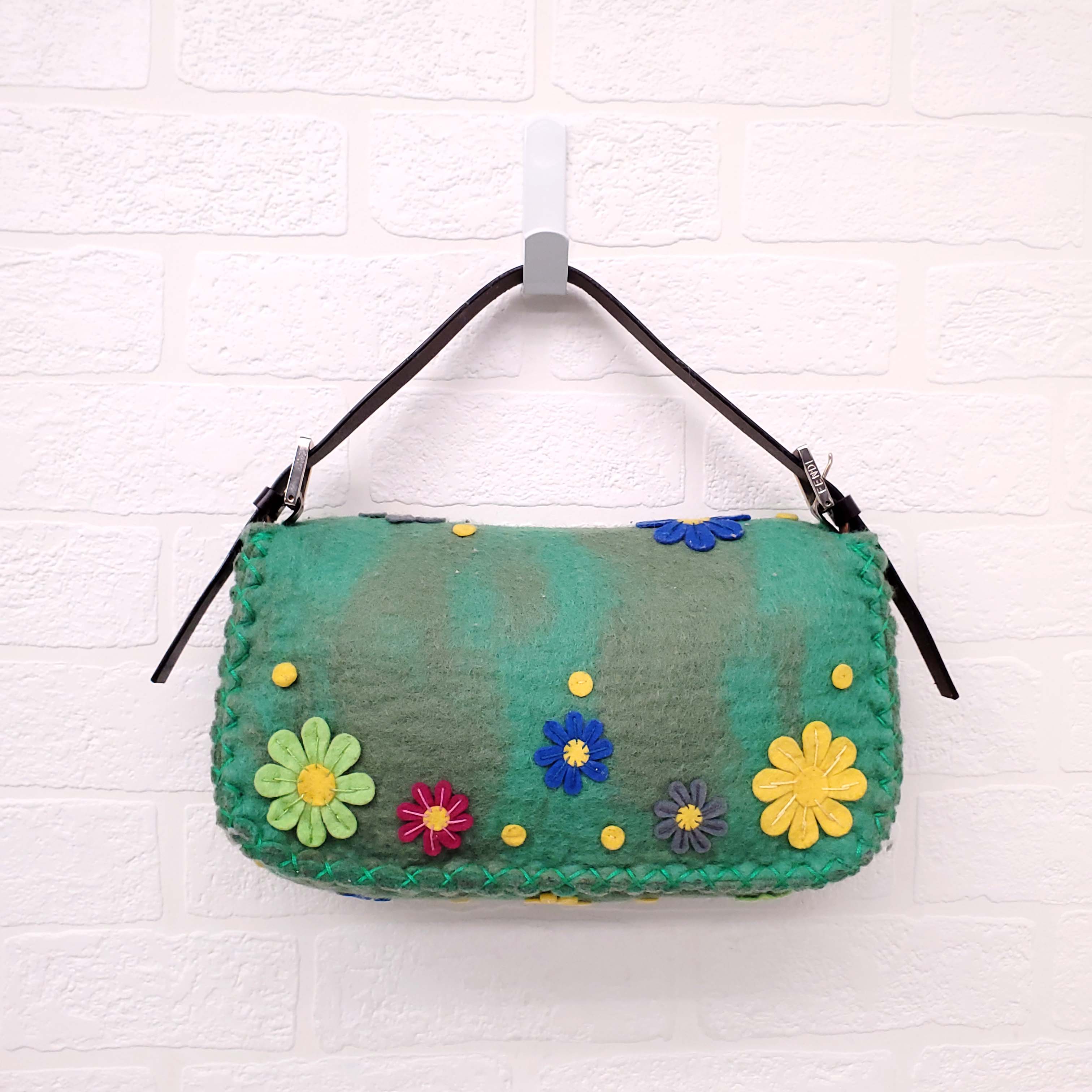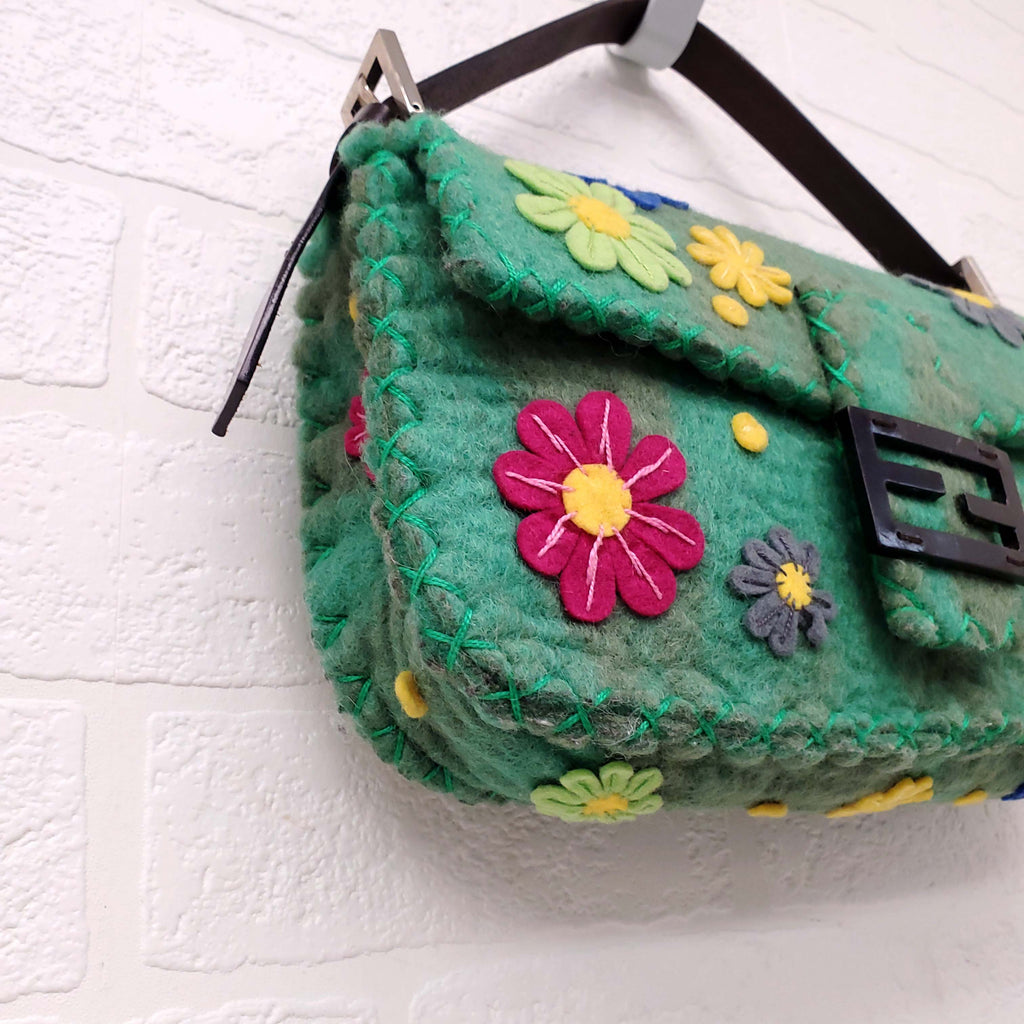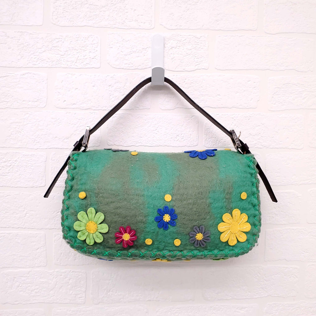 FENDI FELT FLORAL APPLIQUE 'BAGUETTE' SHOULDER BAG