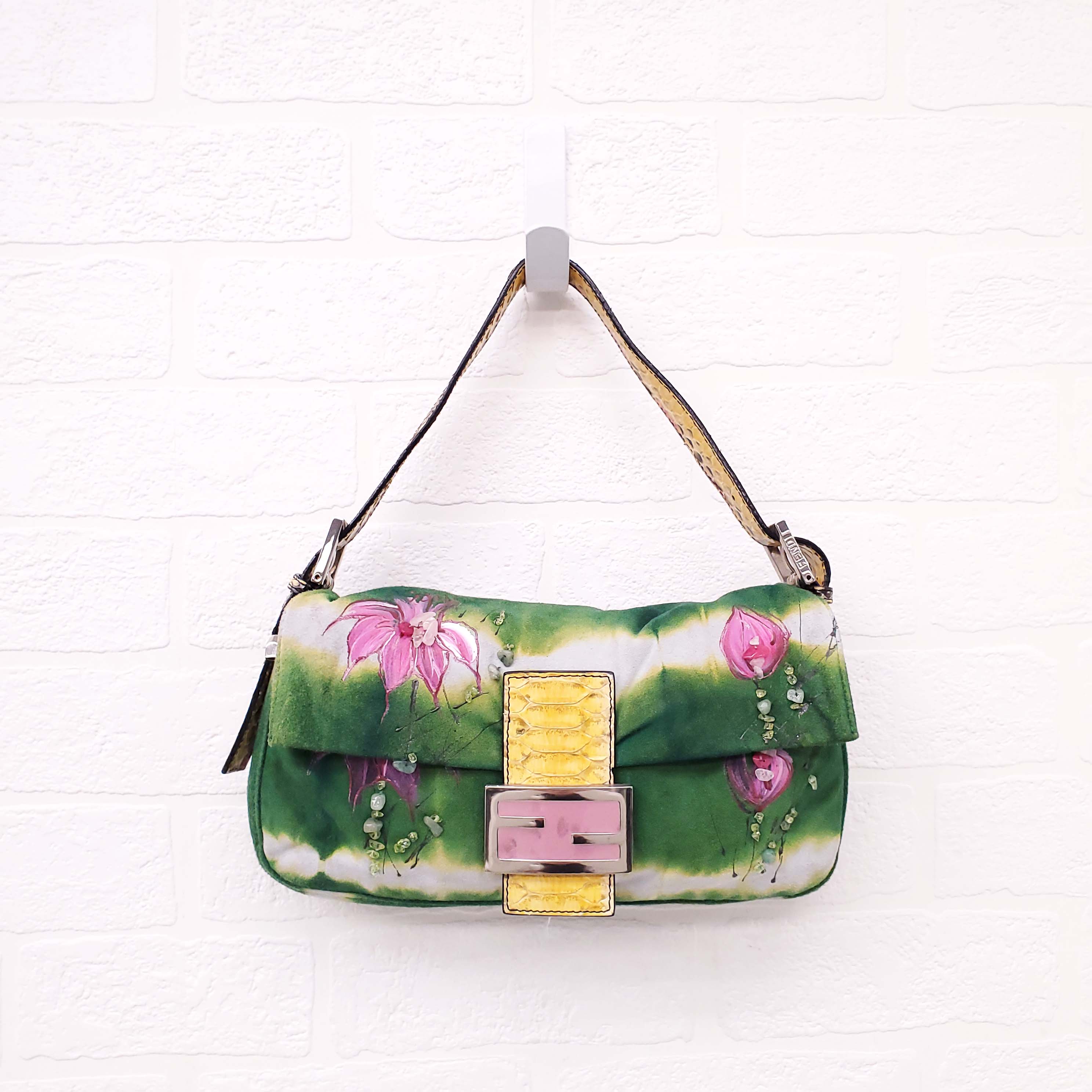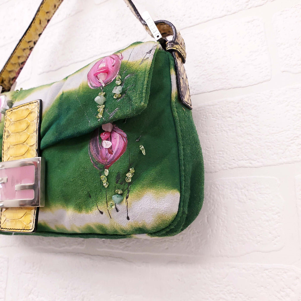 FENDI FLORAL BEADED SUEDE PYHTON 'BAGUETTE' SHOULDER BAG