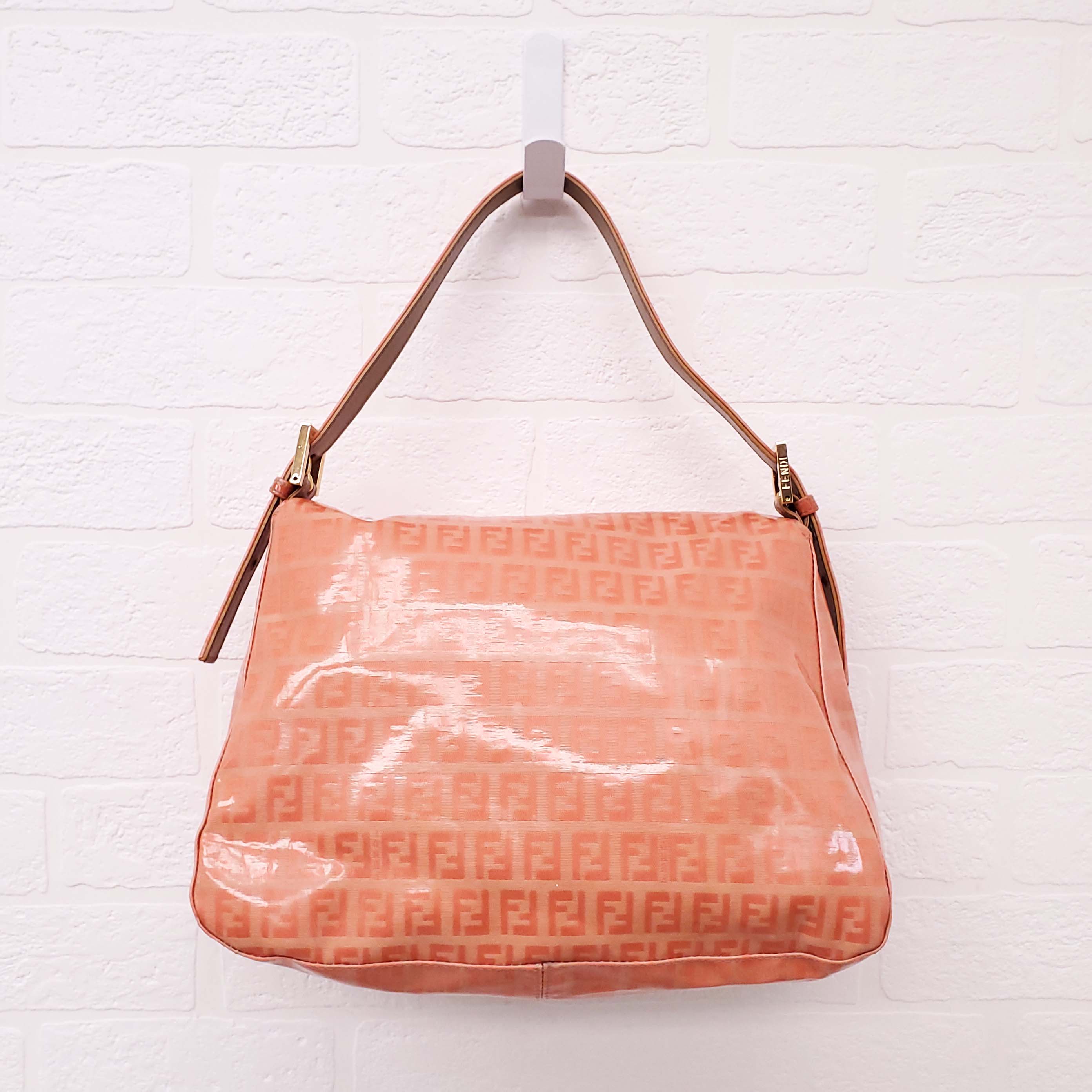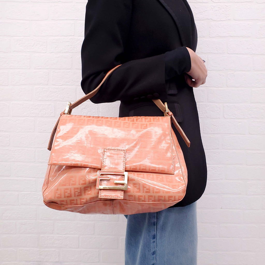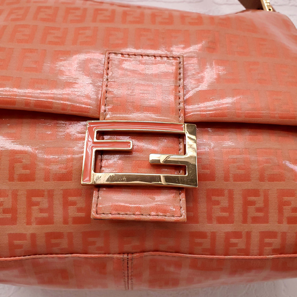 FENDI ORANGE COATED CANVAS 'ZUCCHINO MAMMA BAGUETTE' SHOULDER BAG