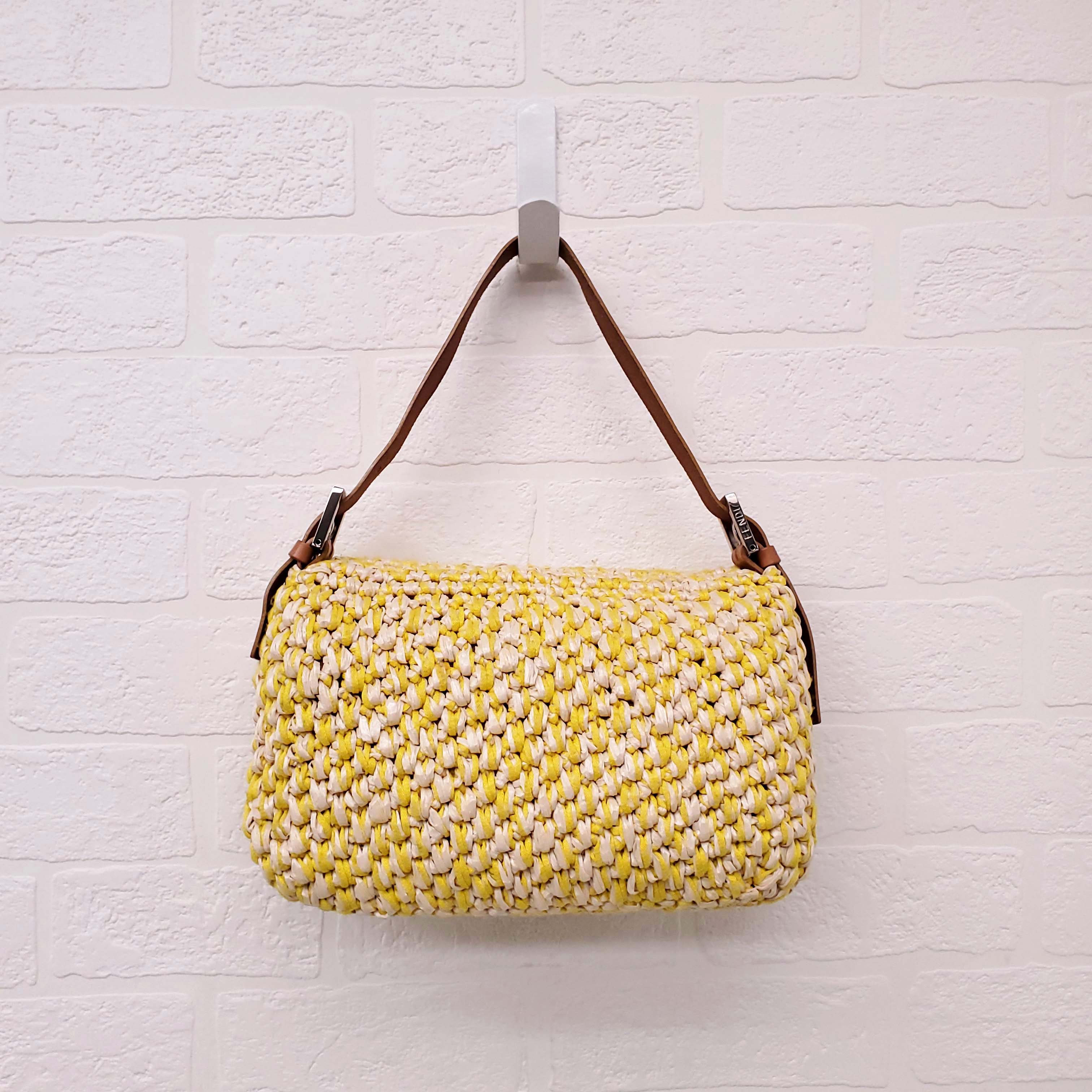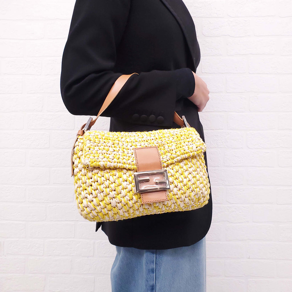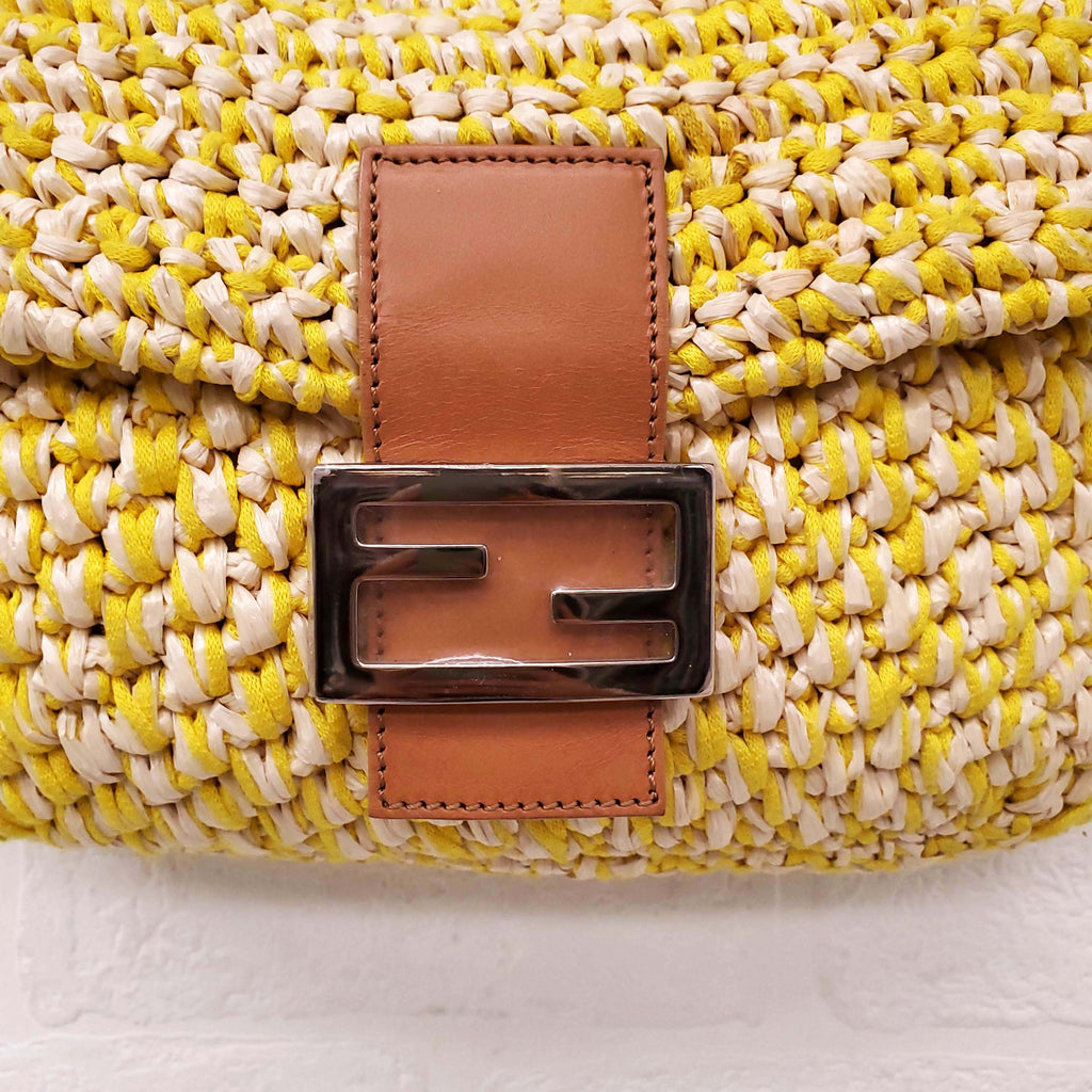 FENDI YELLOW RAFFIA 'BAGUETTE' SHOULDER BAG