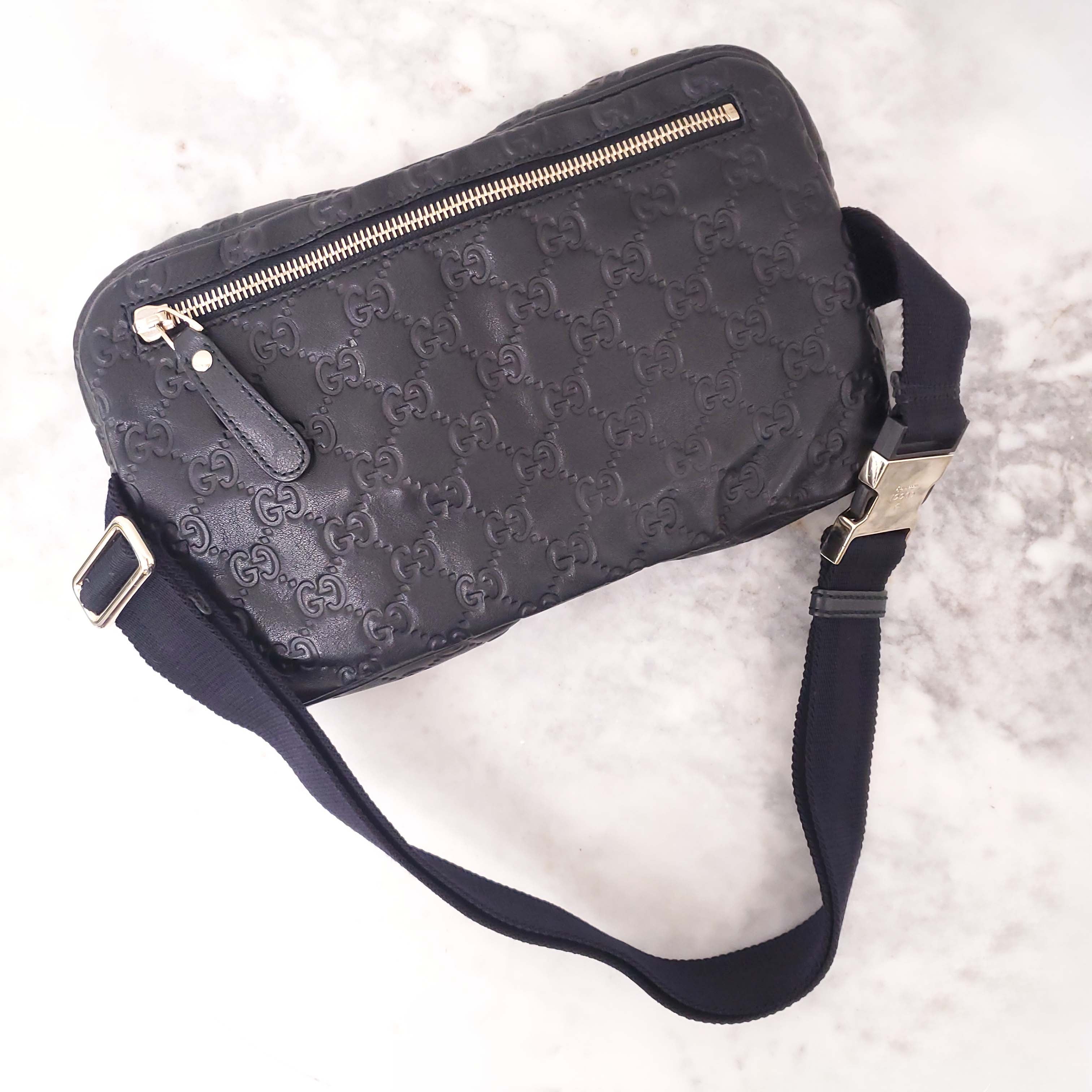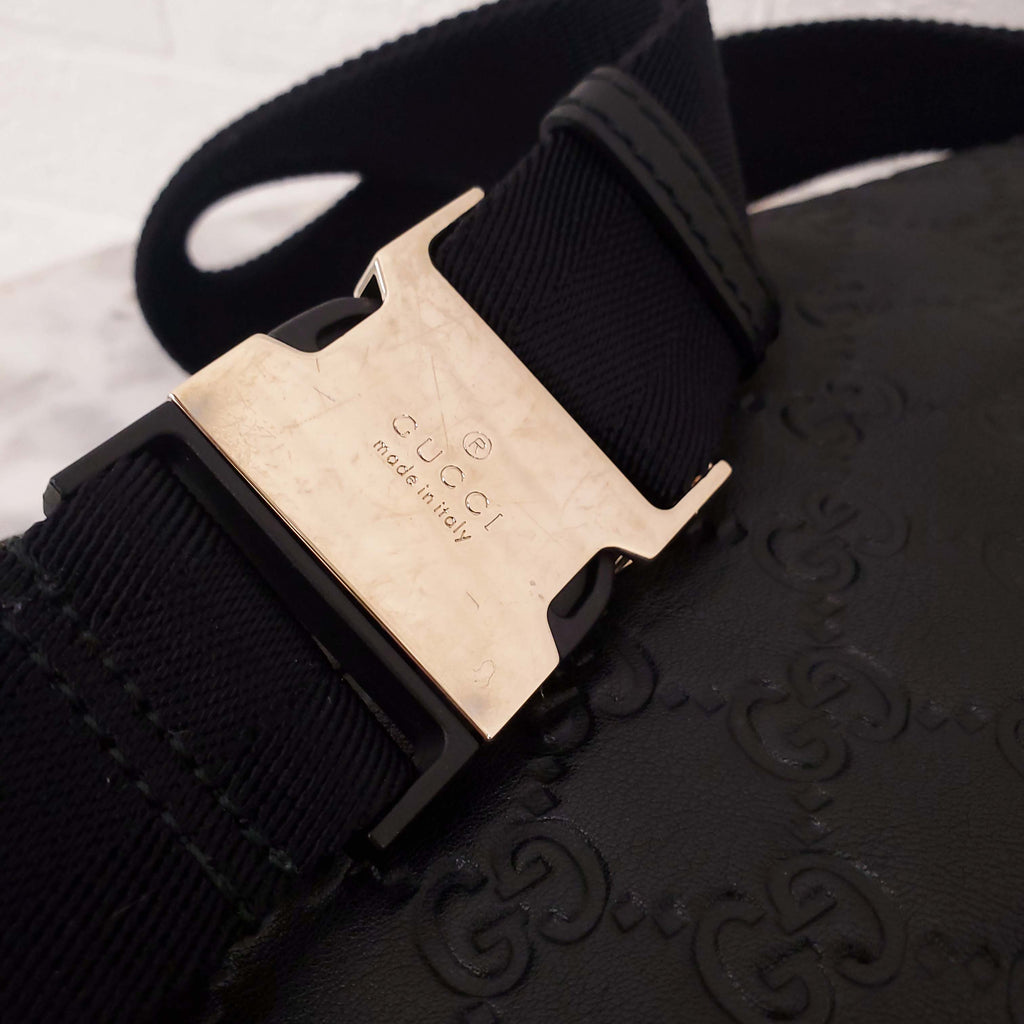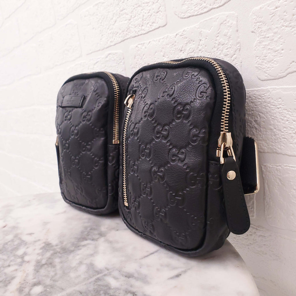 GUCCI BLACK LEATHER MONOGRAM BELT BAG