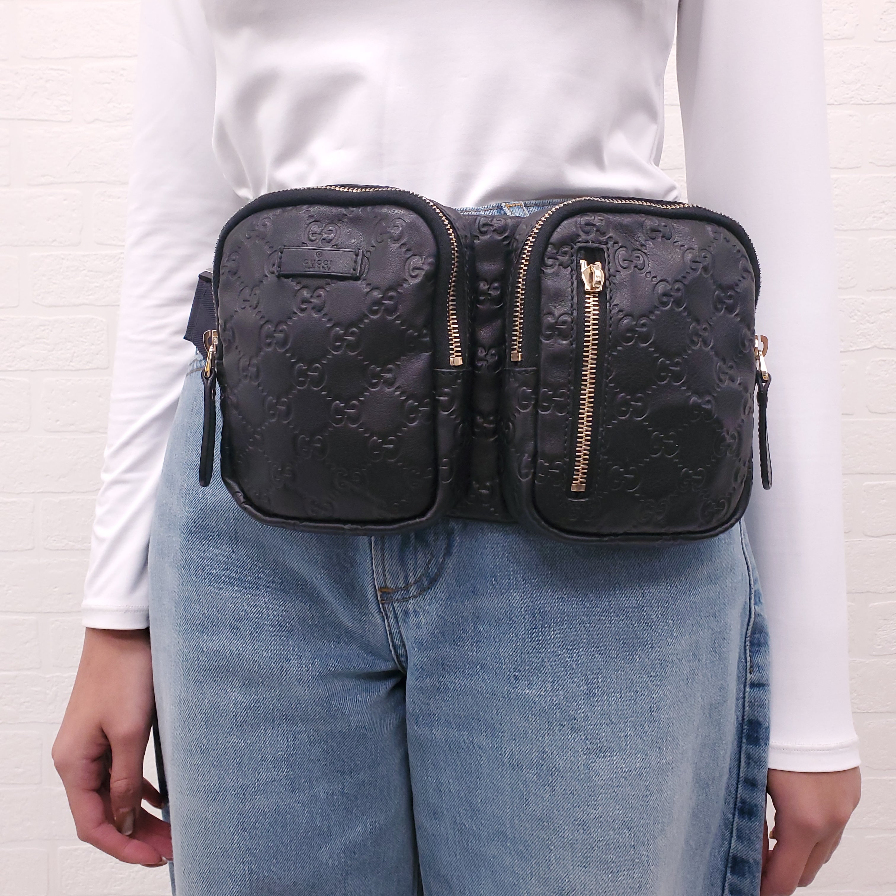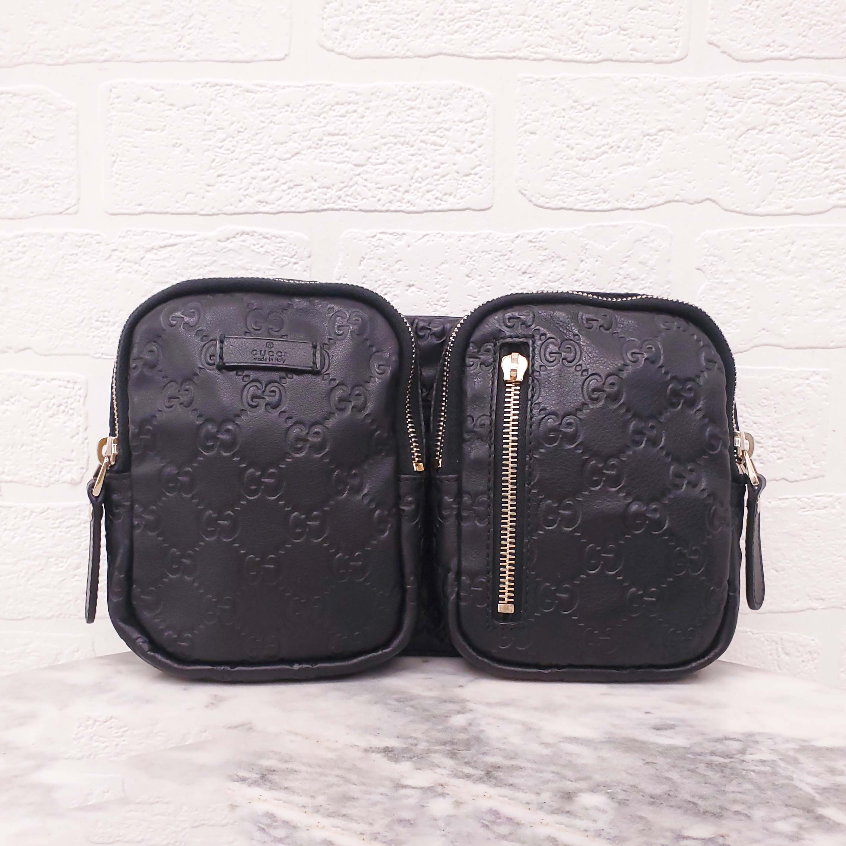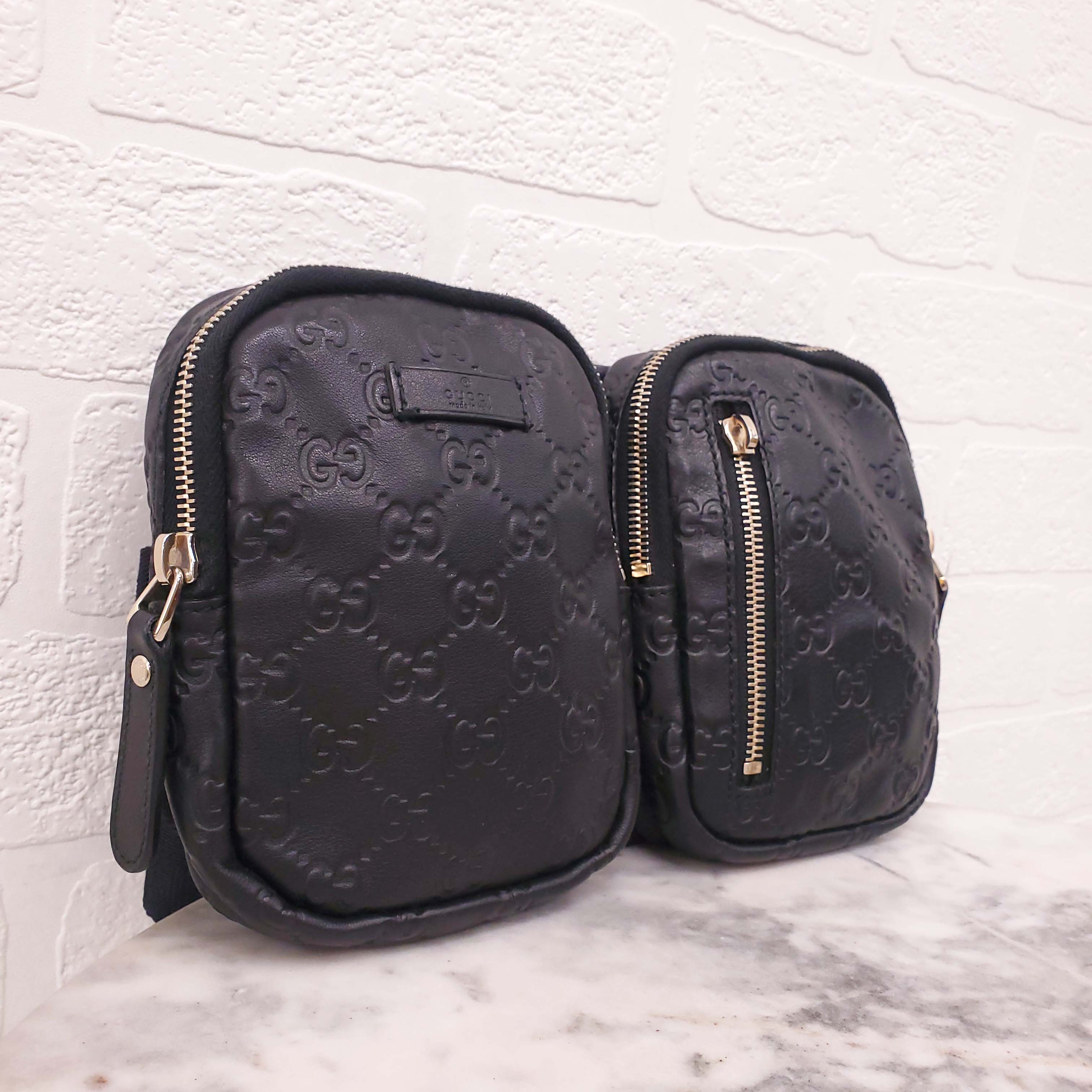 GUCCI BLACK LEATHER MONOGRAM BELT BAG