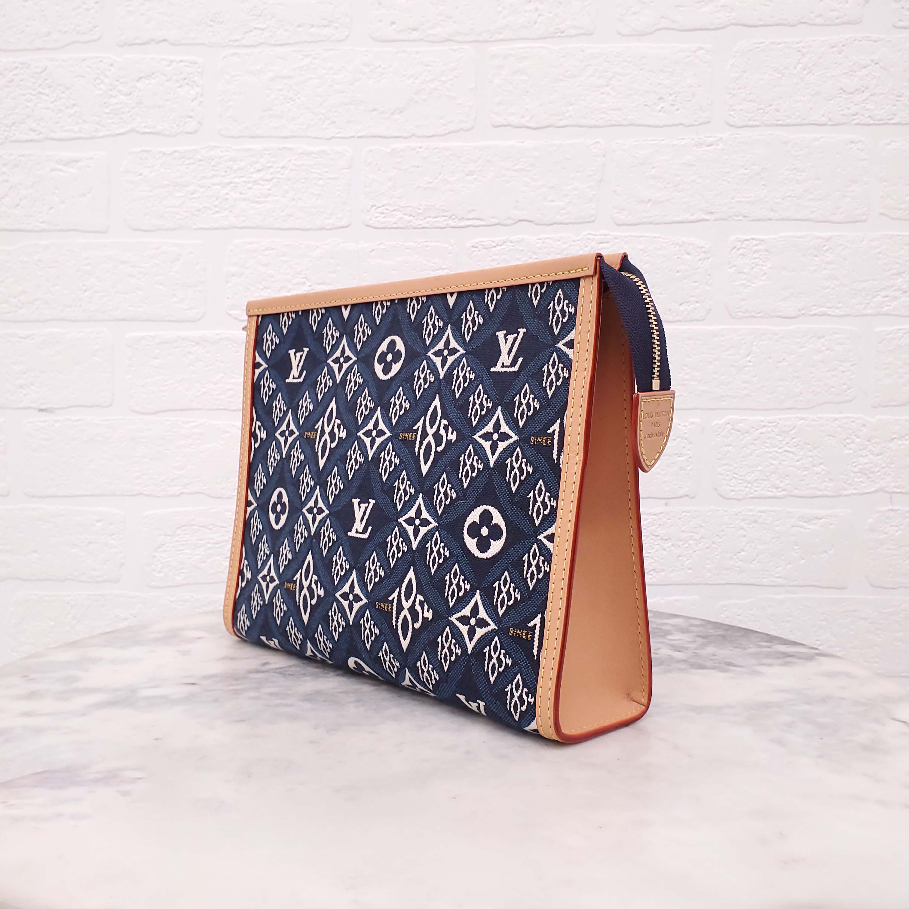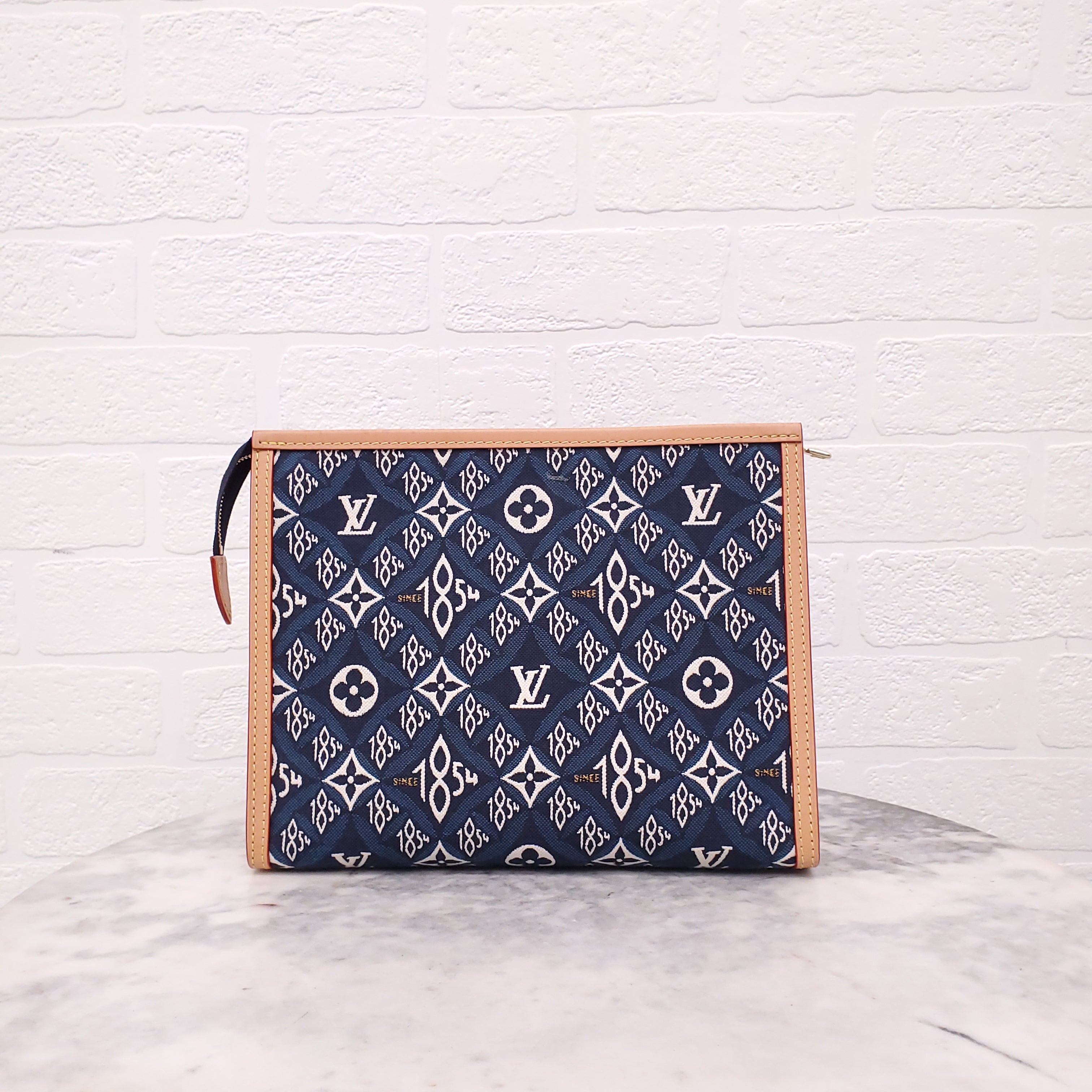 LOUIS VUITTON NAVY MONOGRAM 'JACQUARED SINCE 1854' CLUTCH