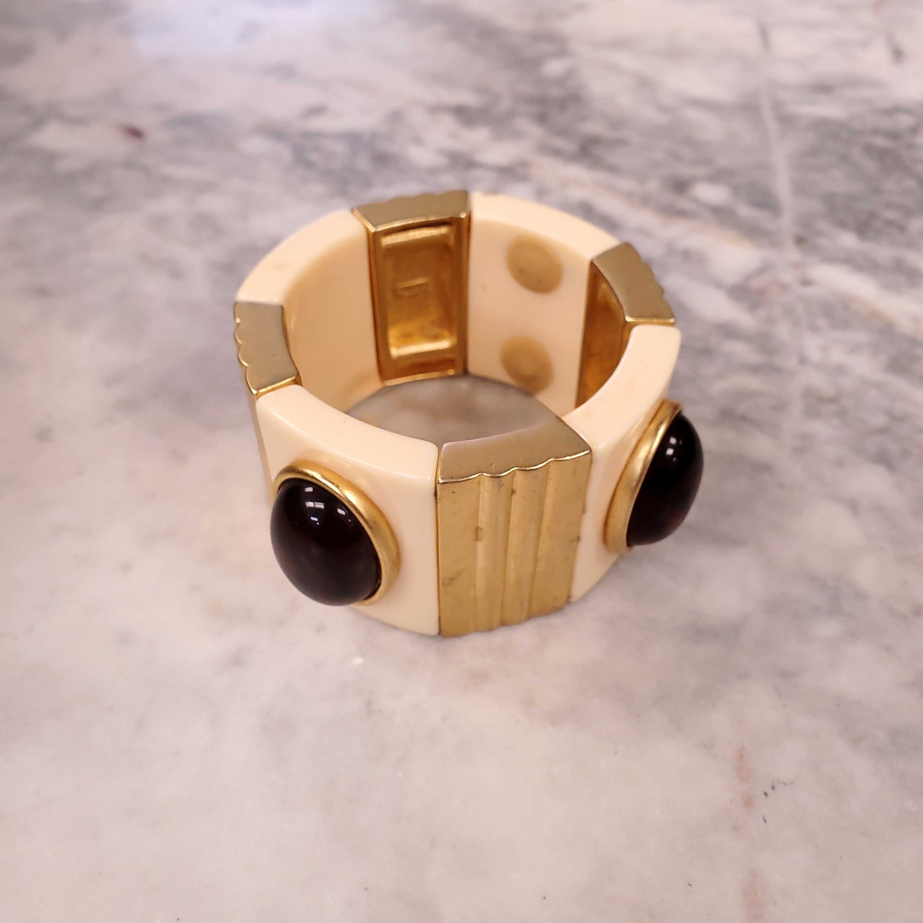 YVES SAINT LAURENT EXPANSION BRACELET WITH AMBER CABOCHONS SET IN CREAM AND GOLD-COLOURED PLASTIC