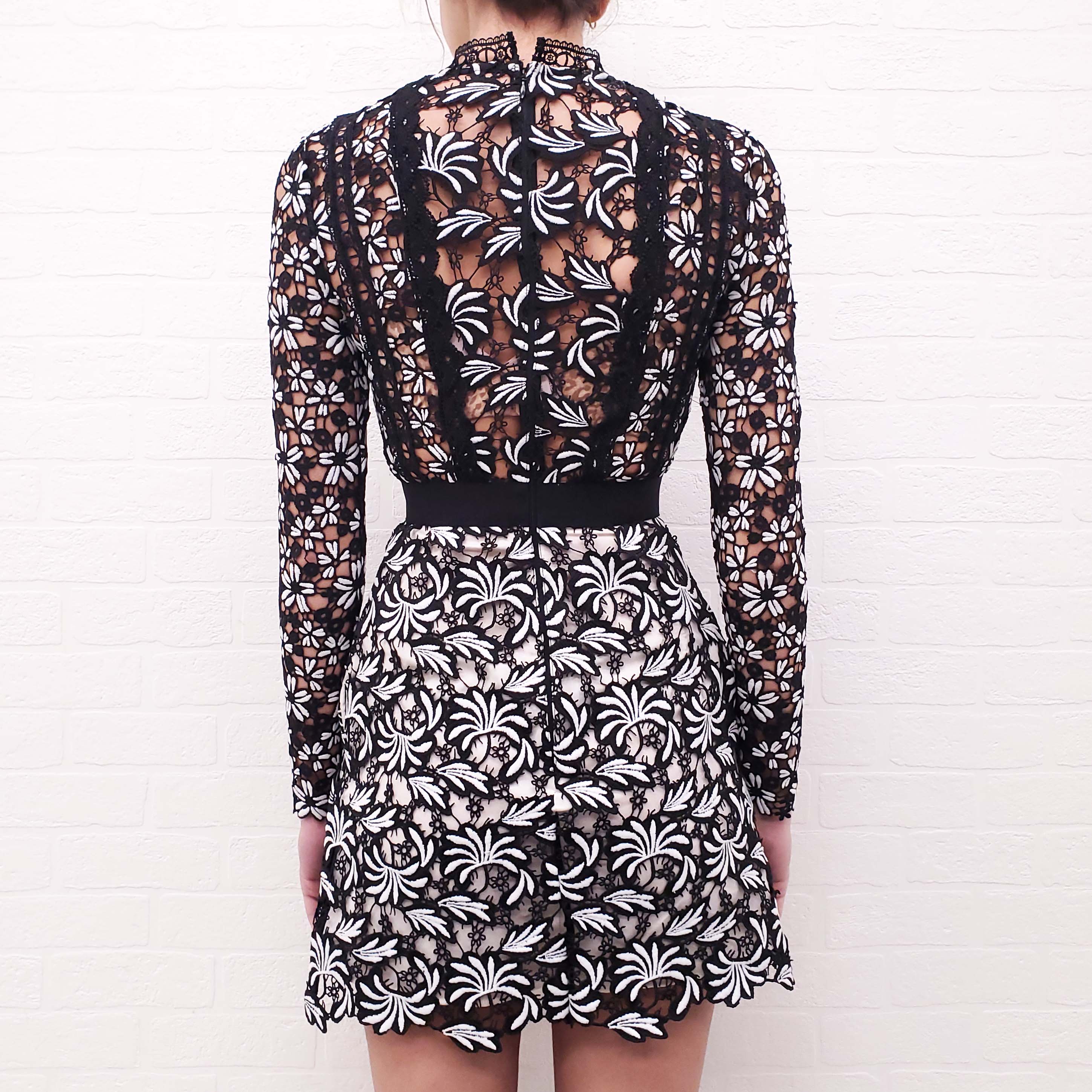 SELF-PORTRAIT BLACK AND WHITE LACE DRESS - SIZE 0