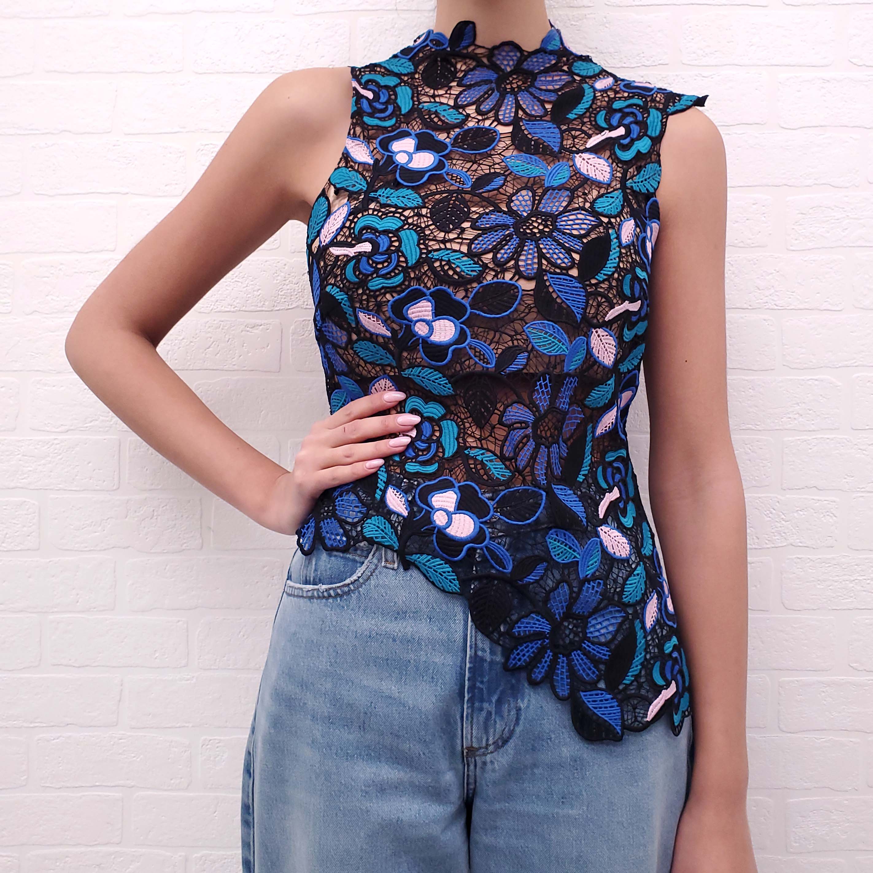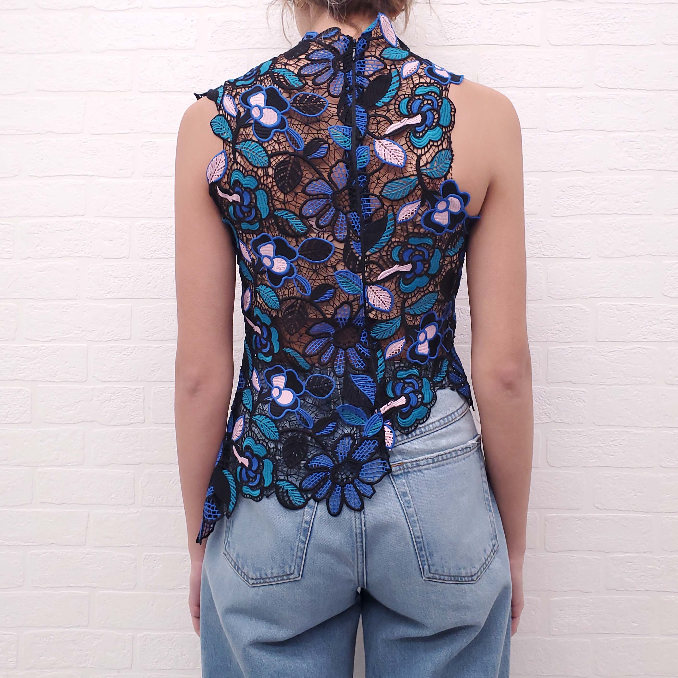 SELF-PORTRAIT BLUE FLORAL LACE TOP - SIZE 4