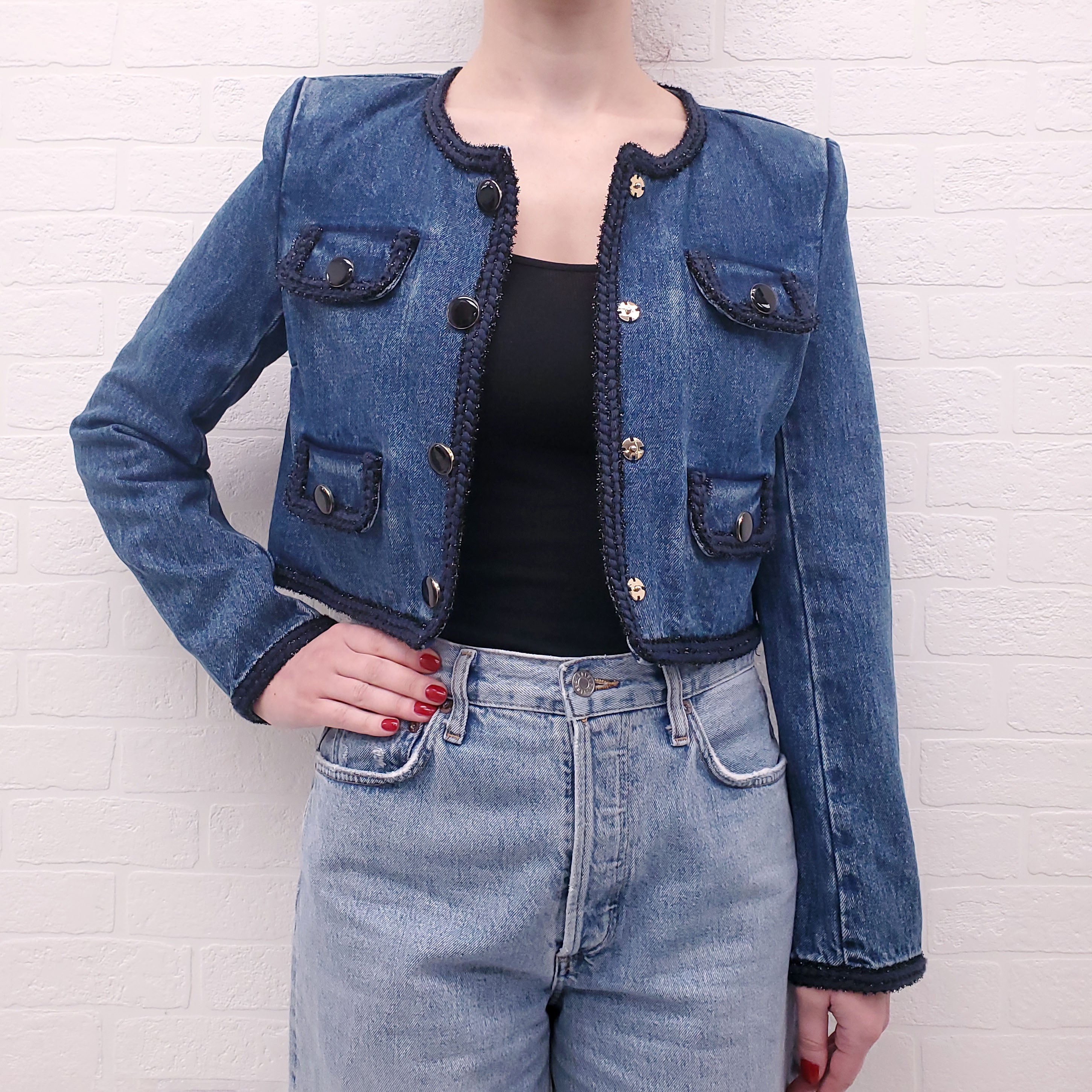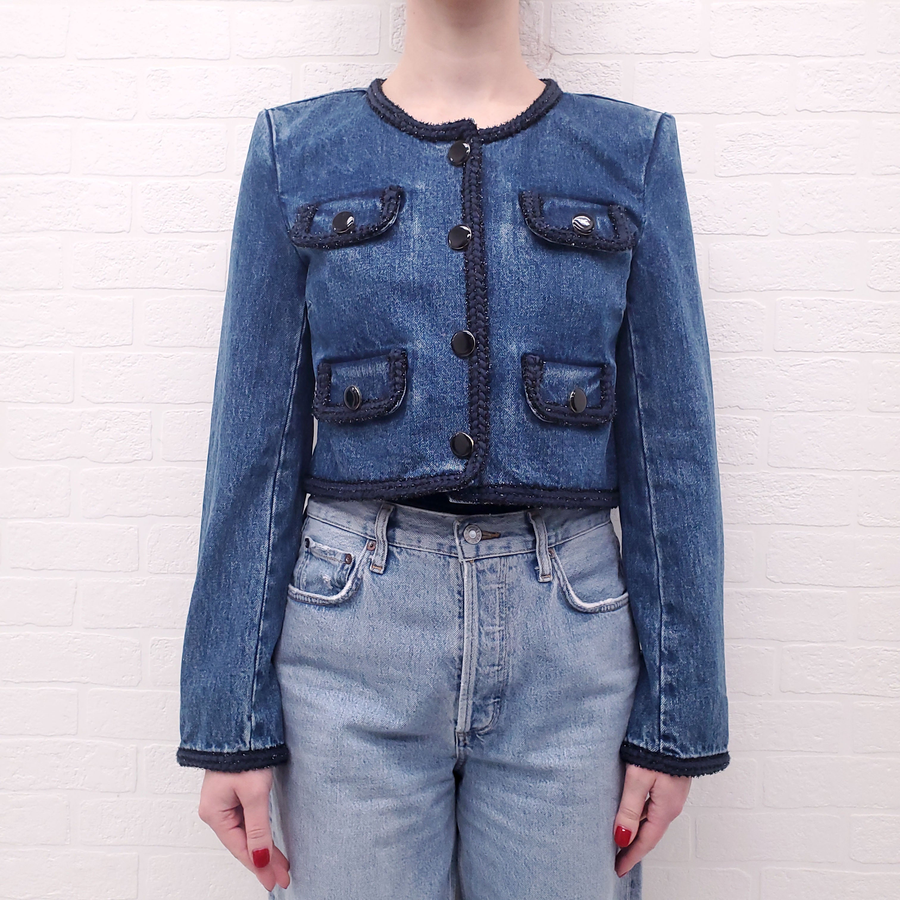SELF-PORTRAIT DENIM JACKET WITH RIBBONING DETAIL - SIZE 6
