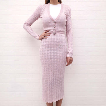 ALESSANDRA RICH PINK SHIMMER SWEATER SET WITH CRYSTAL BUTTONS - SIZE S