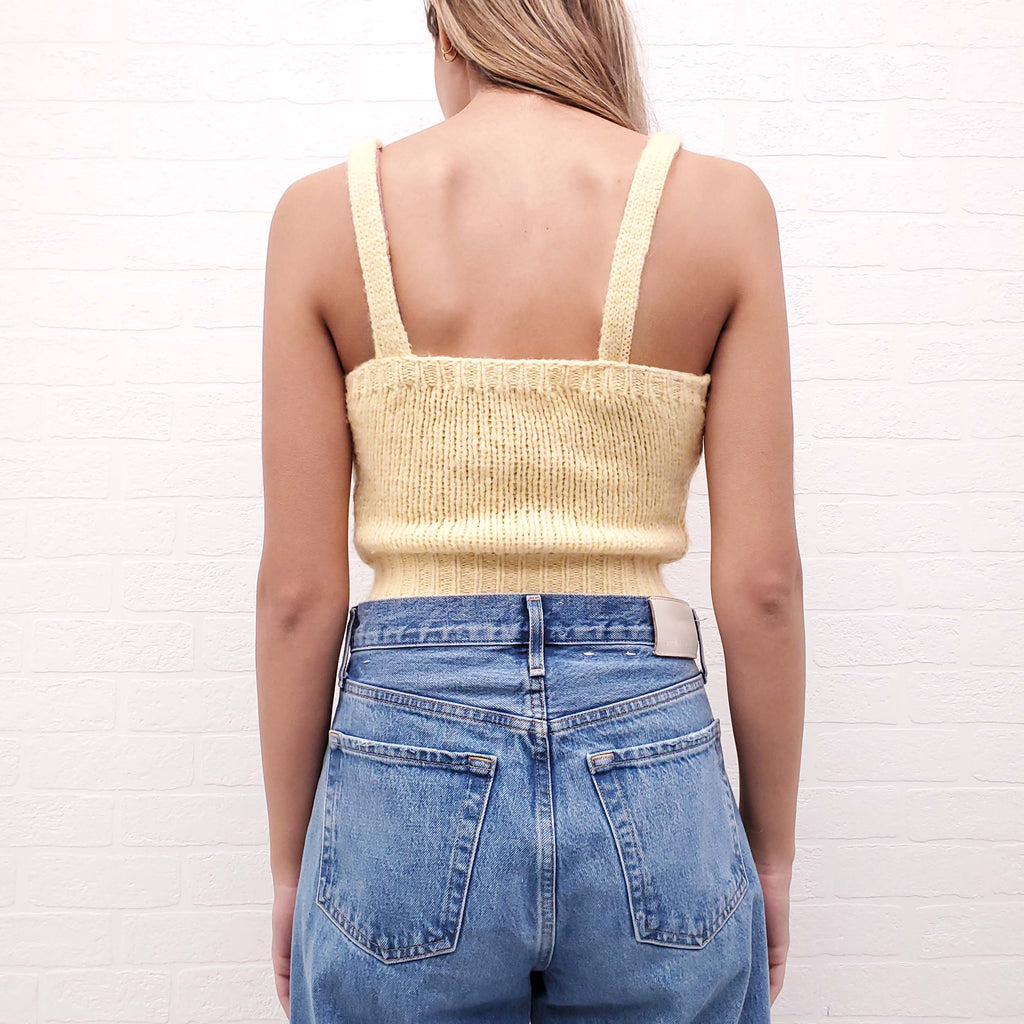 ALESSANDRA RICH YELLOW PEARL CARDIGAN SET - SIZE 38 TOP/36 SWEATER