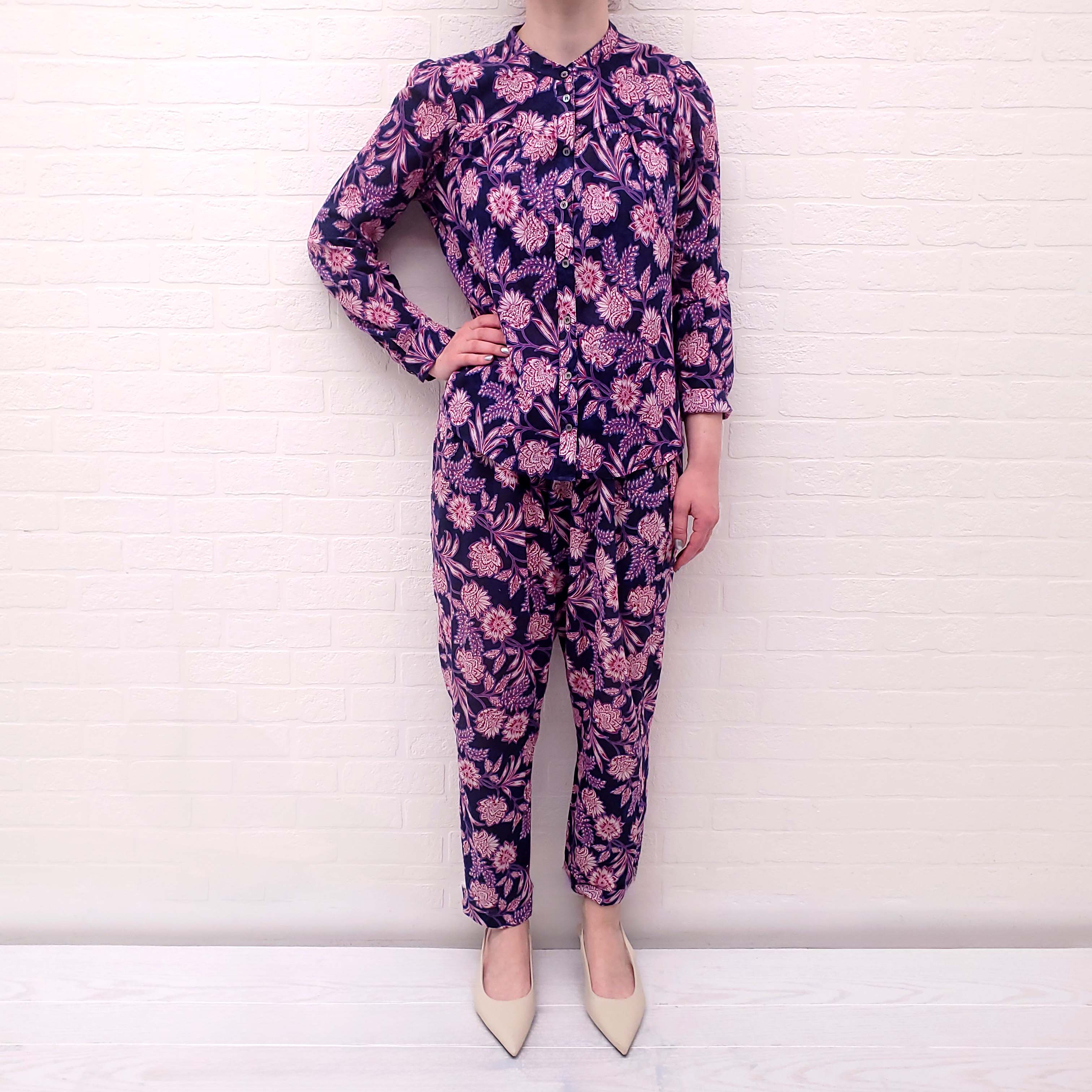 XIRENA FLORAL PATTERNED PANTS AND BLOUSE SET - SIZE S