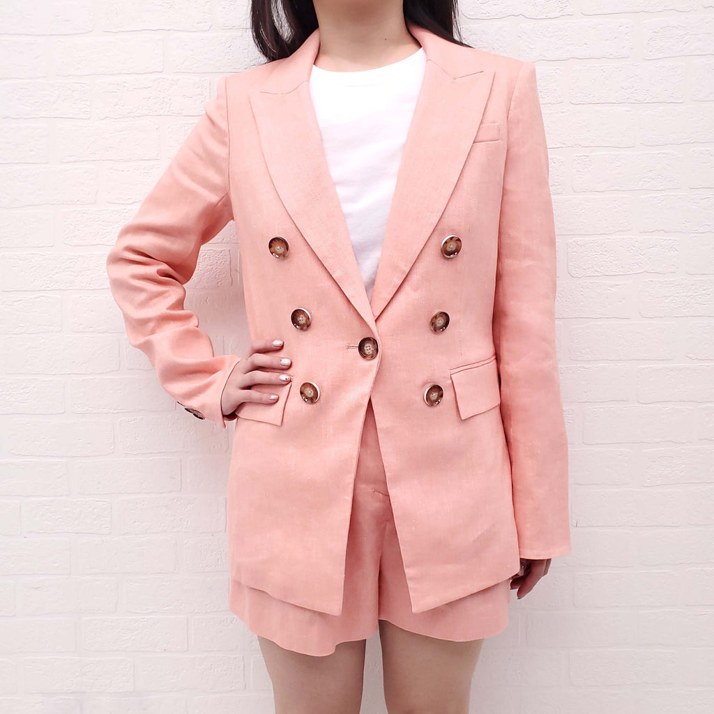 VERONICA BEARD CORAL LINEN SHORTS SUIT - SIZE 6