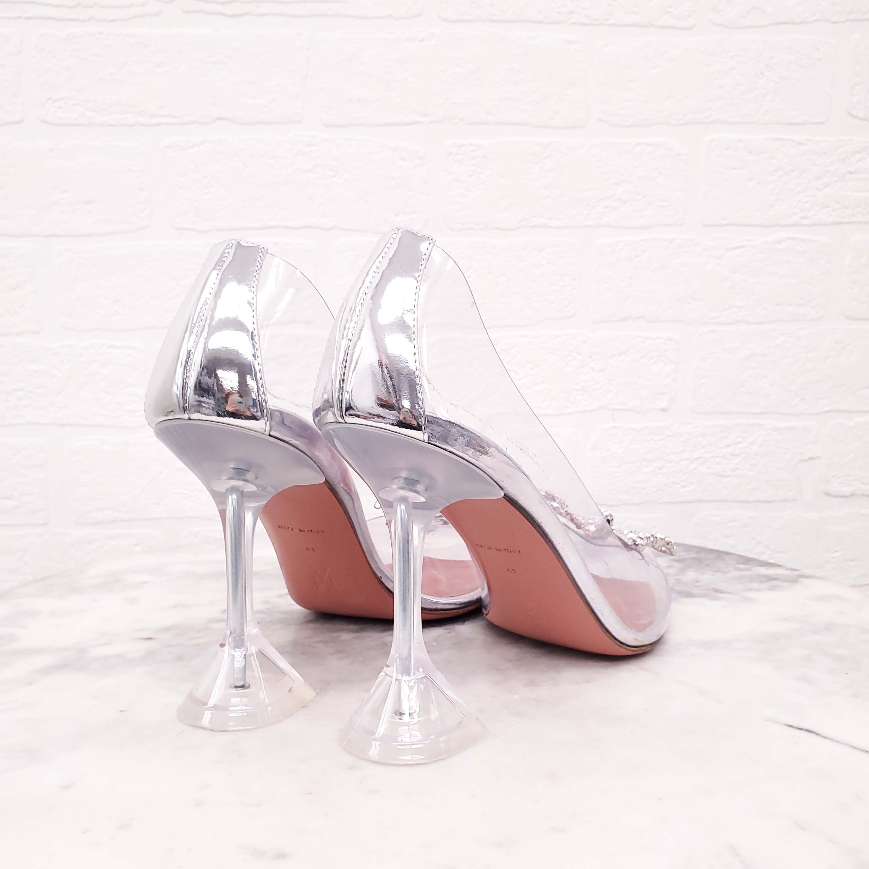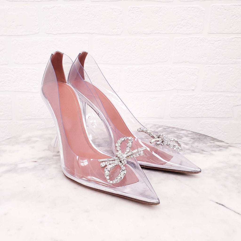 AMINA MUADDI LUCITE HEELS WITH CRYSTAL BOW - SIZE 41