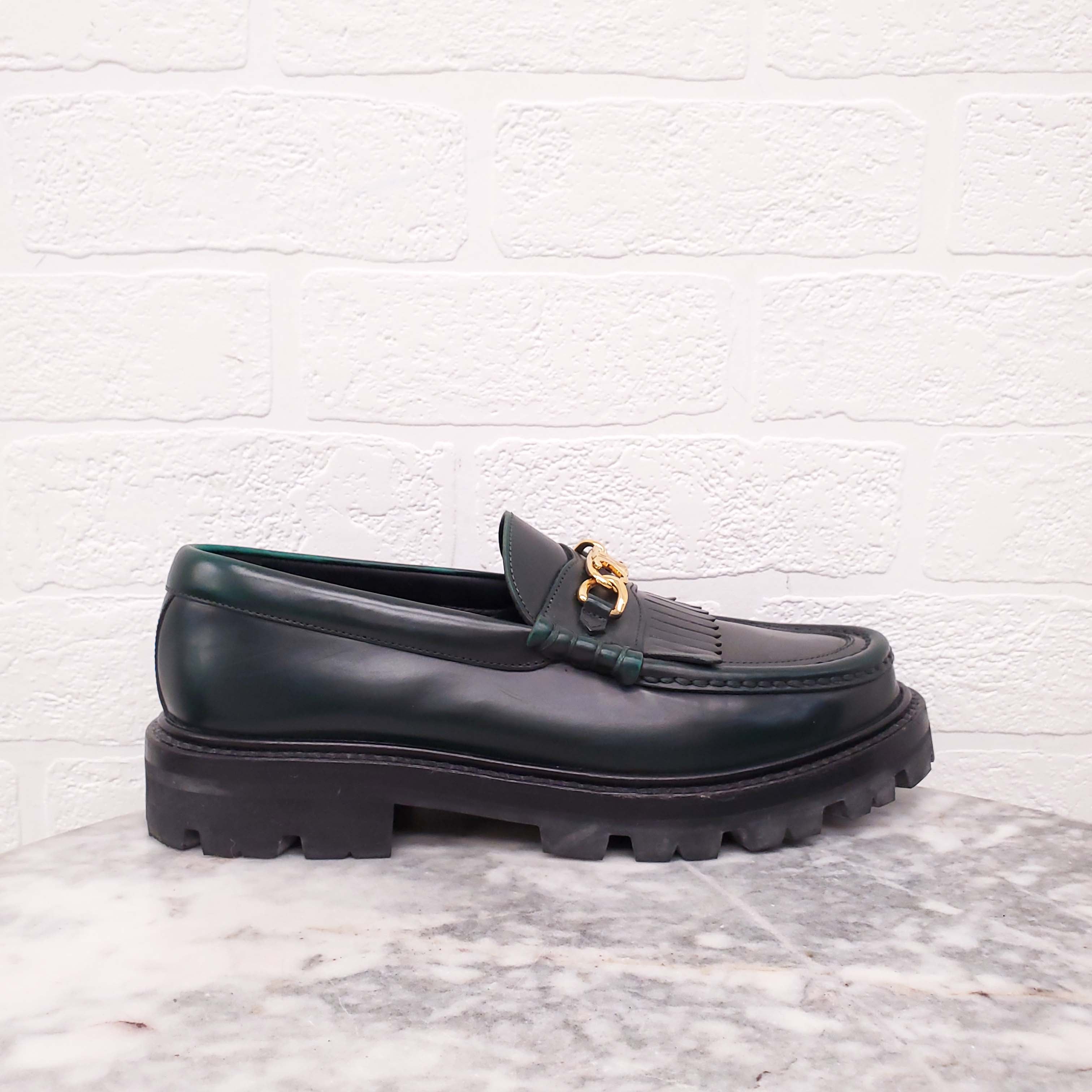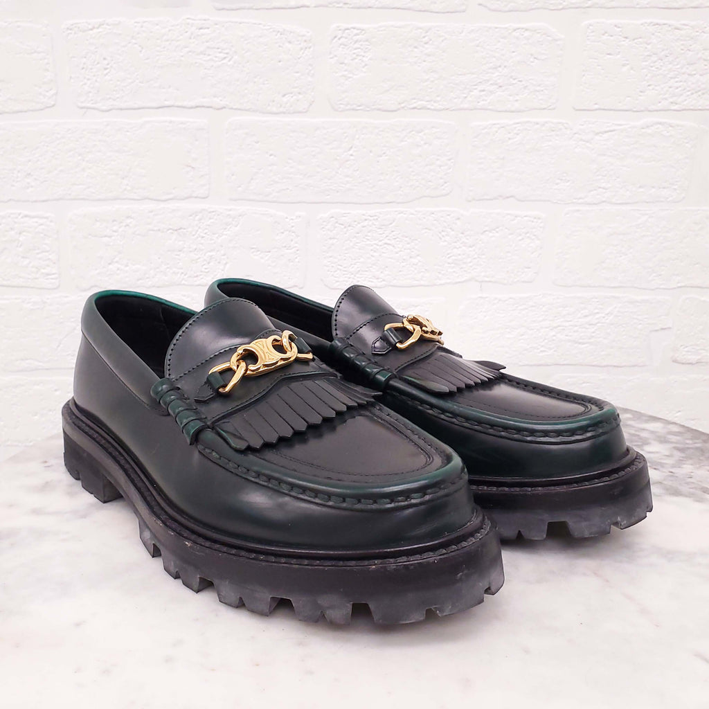CELINE DARK GREEN 'MARGARET TRIOMPHE' LOAFERS - SIZE 38
