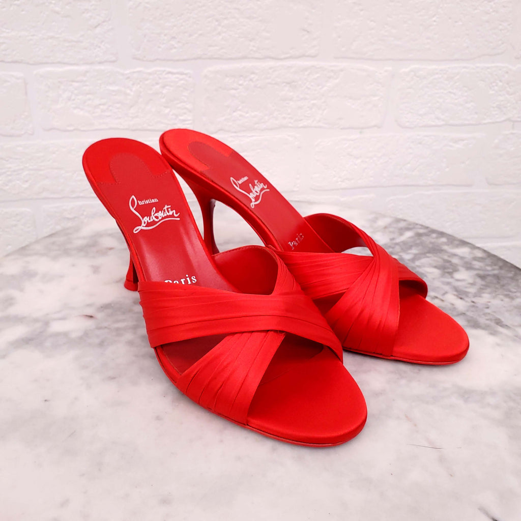 CHRISTIAN LOUBOUTIN RED SATIN SANDALS - SIZE 40