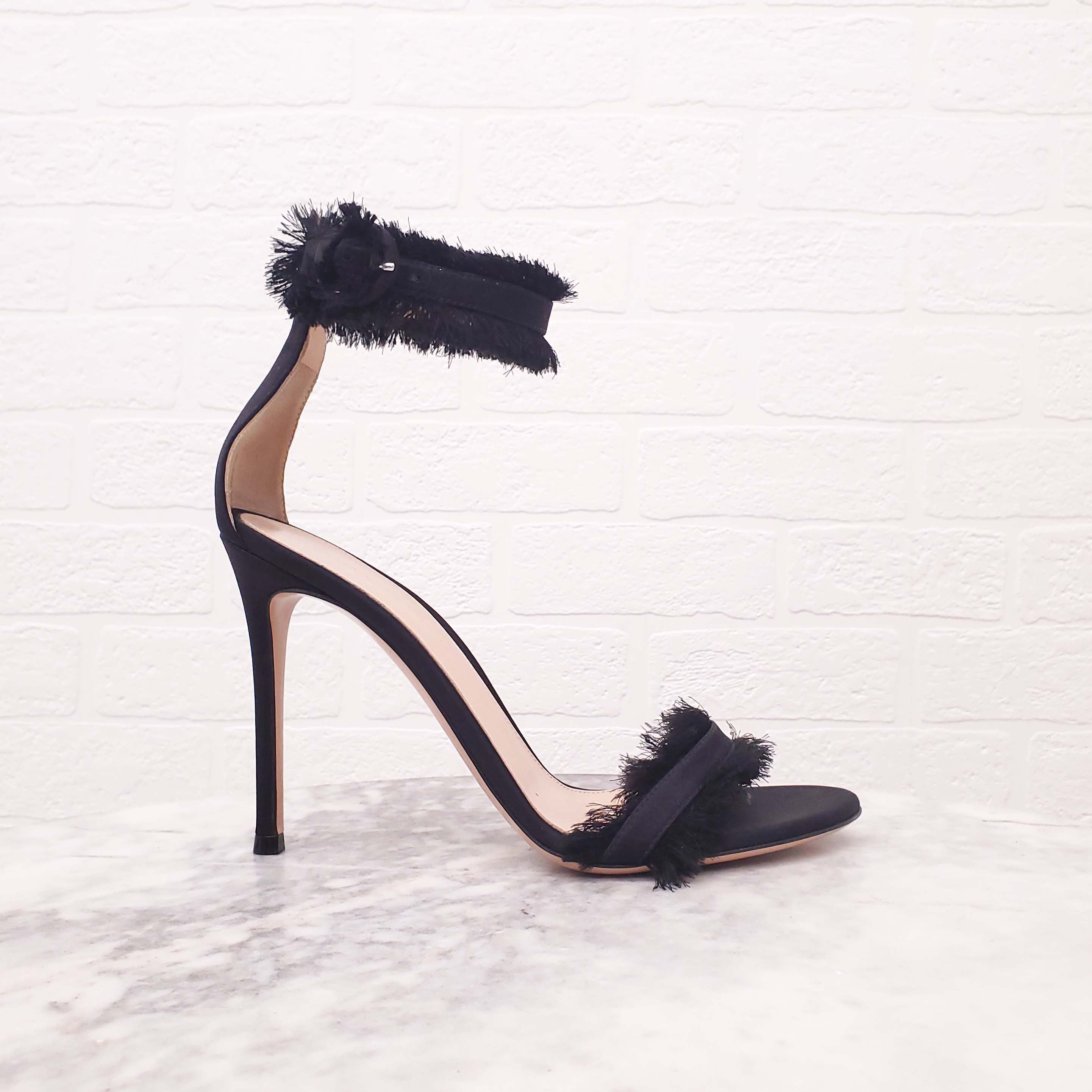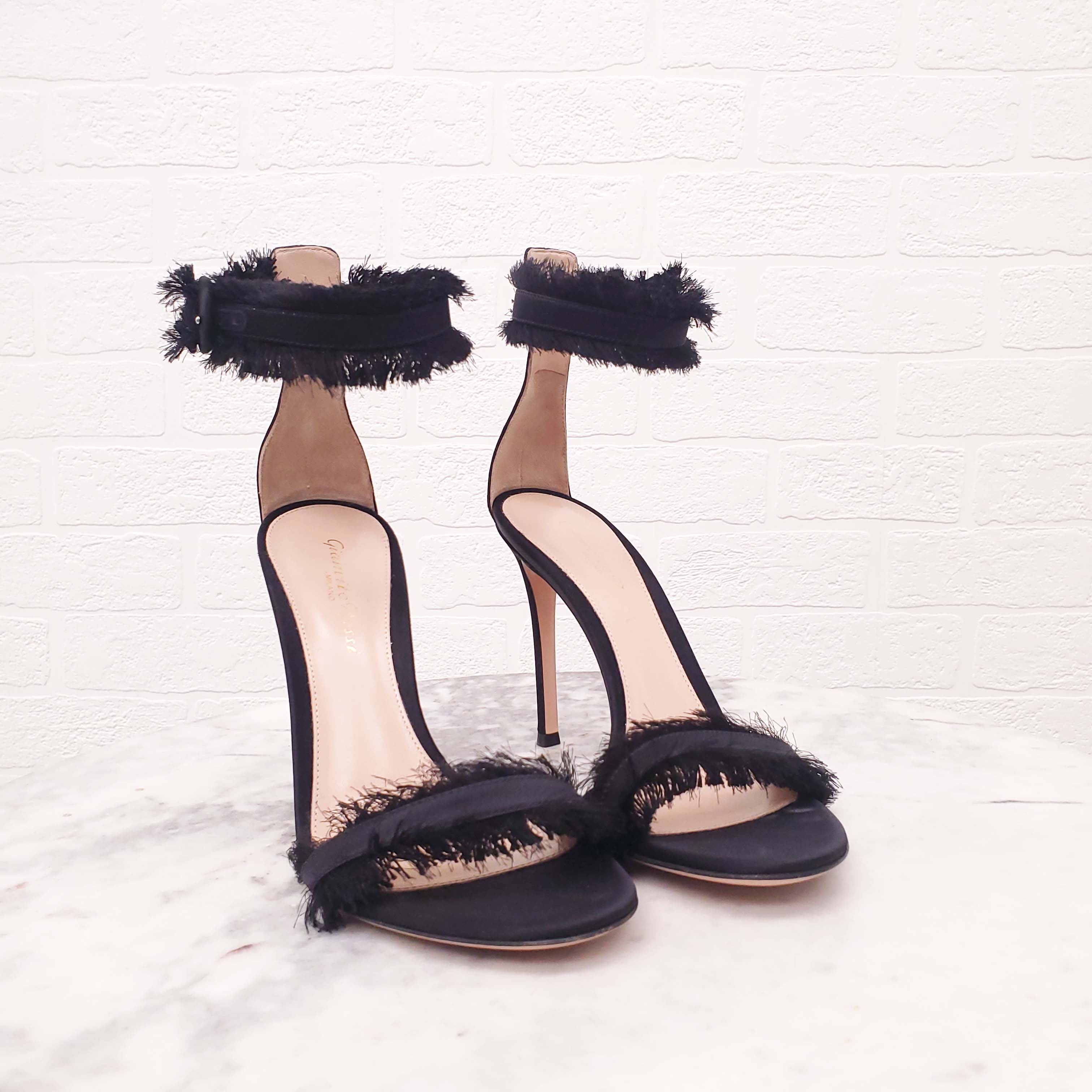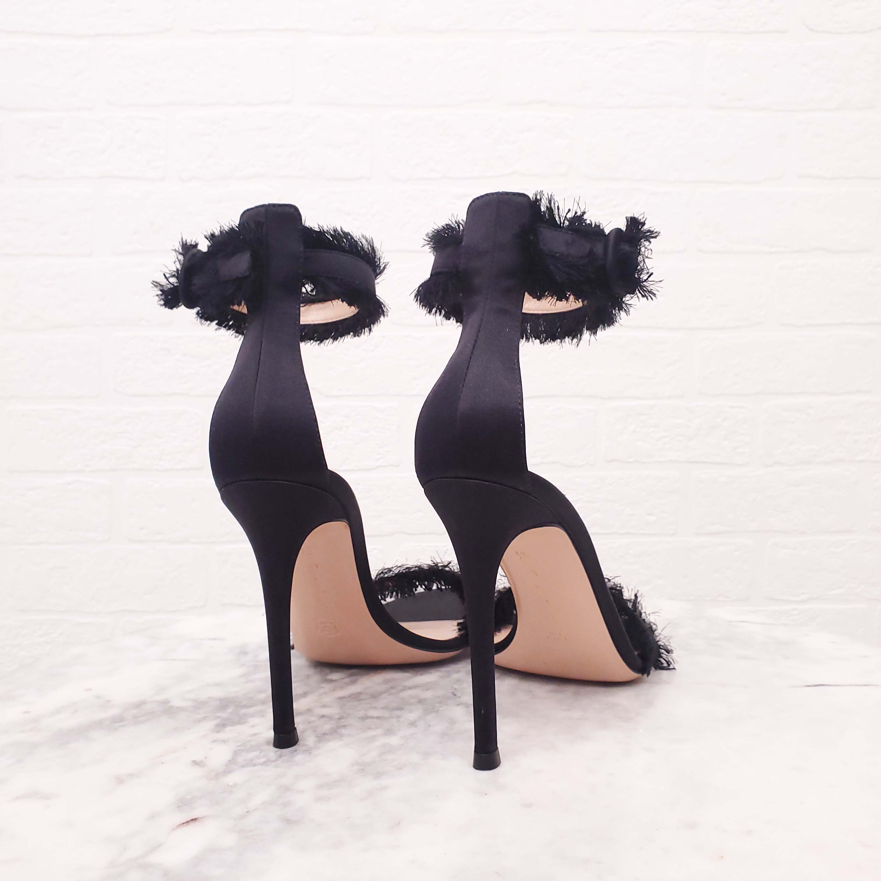 GIANVITO ROSSI BLACK FRINGE HEELS - SIZE 37.5