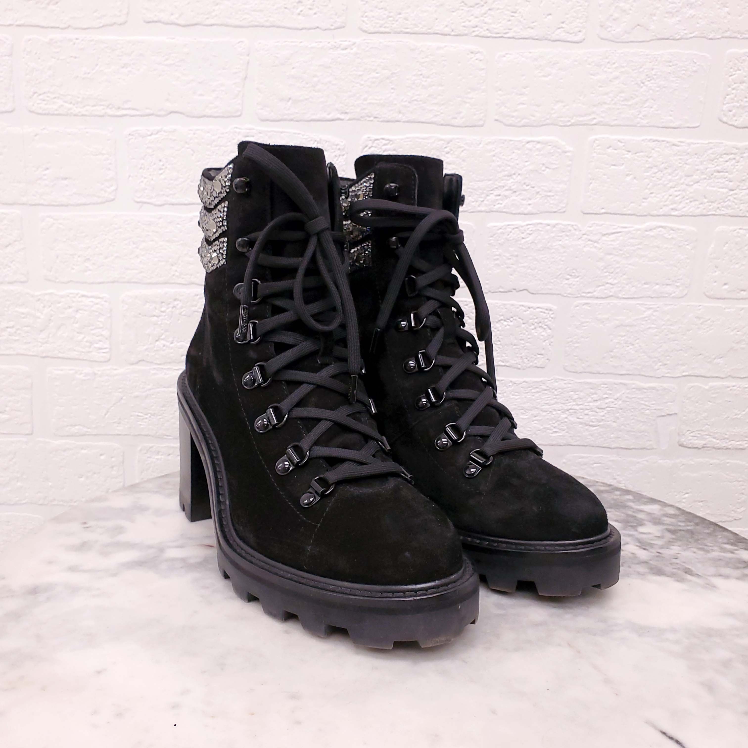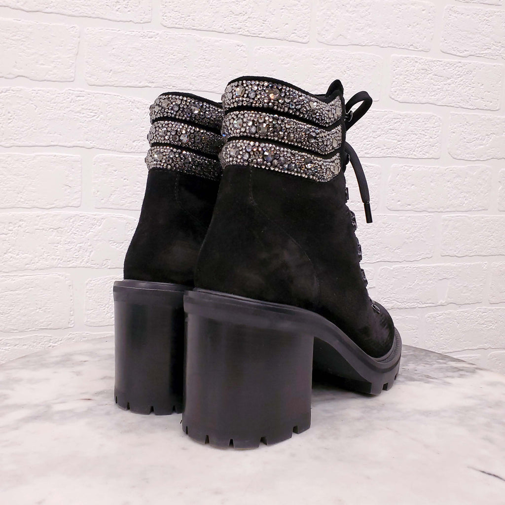 JIMMY CHOO BLACK SUEDE MOTORCYCLE BOOTS WITH CRYSTAL CUFF - SIZE 39