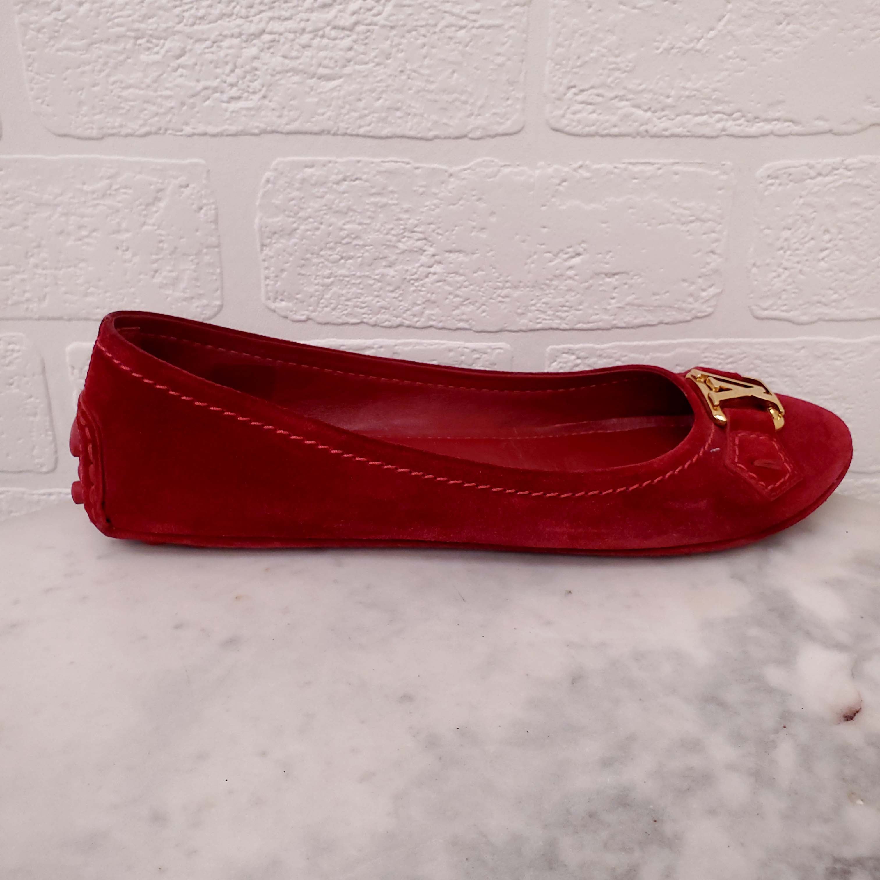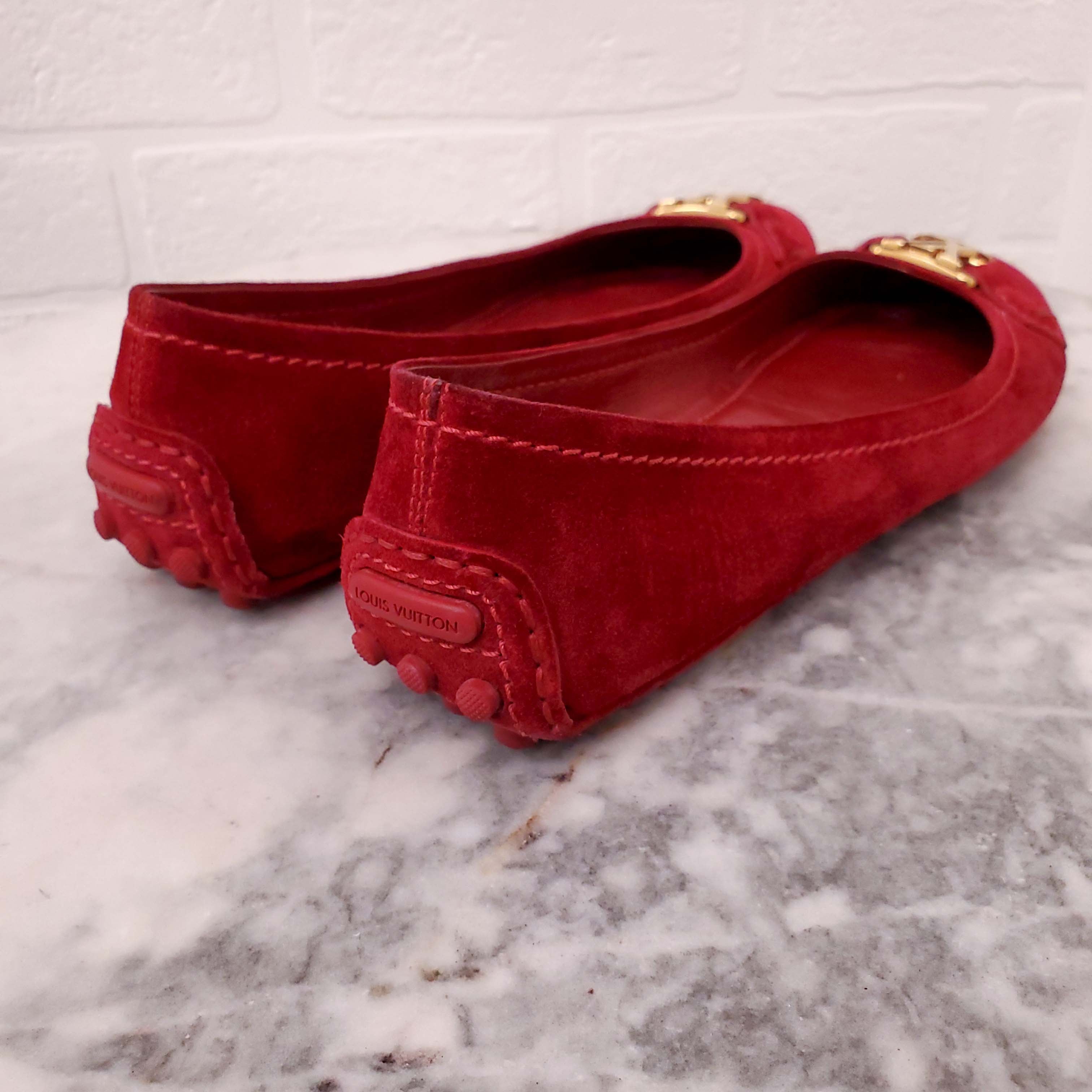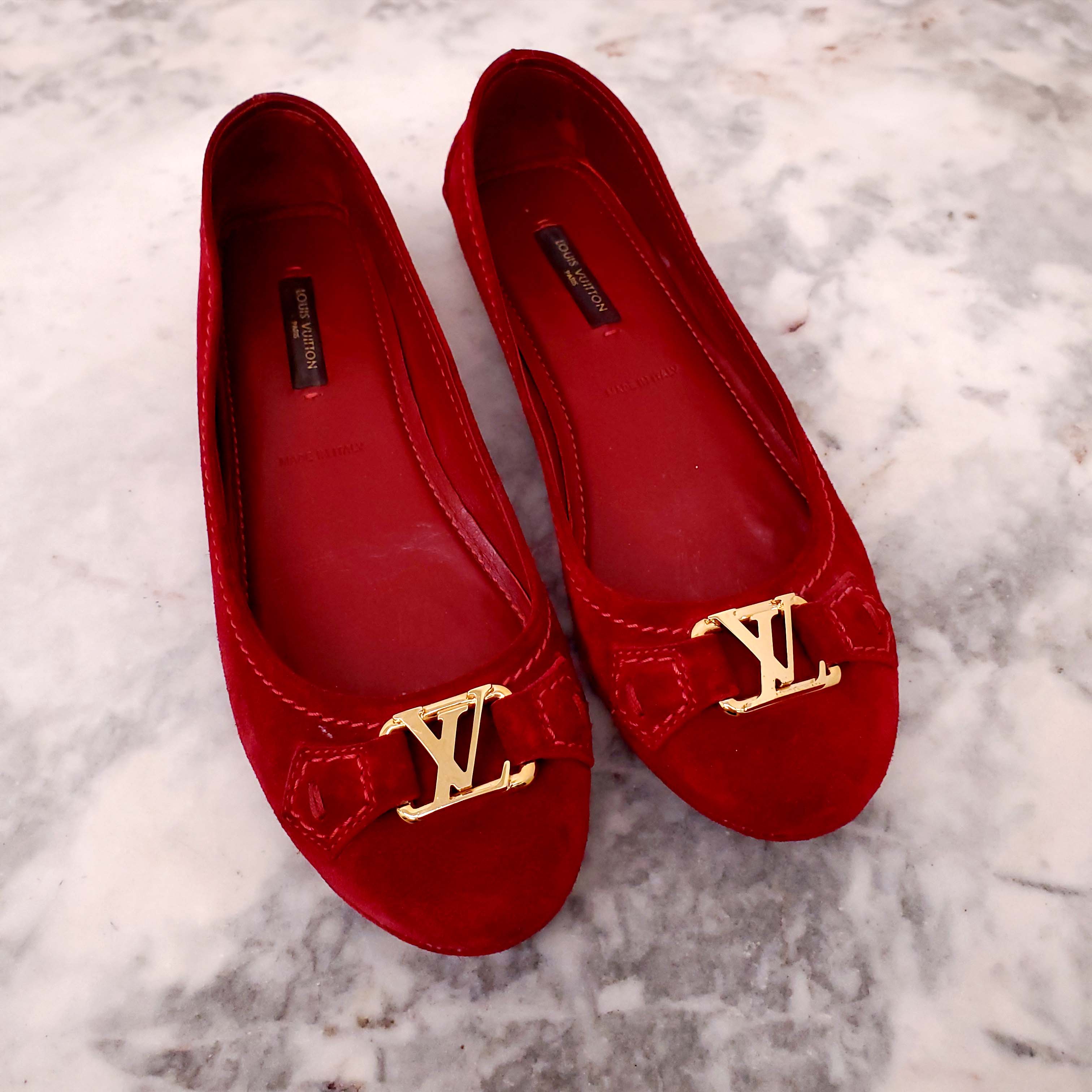 LOUIS VUITTON RED SUEDE FLATS WITH LOGO - SIZE 36