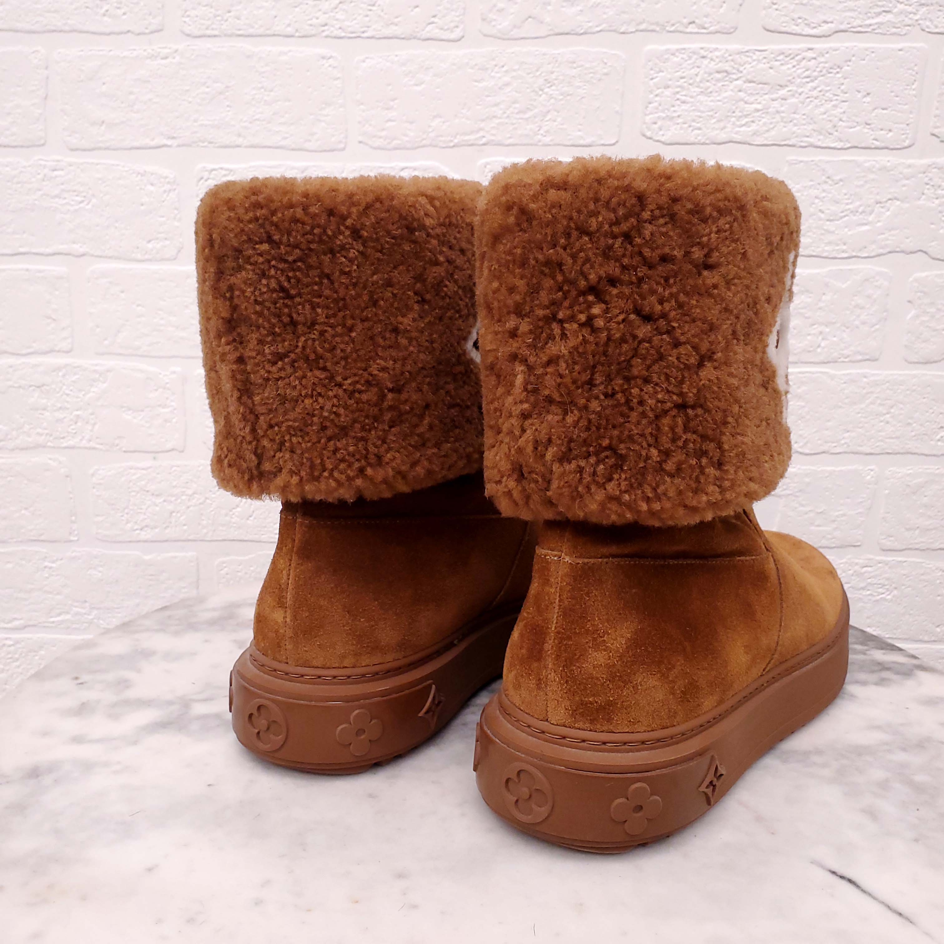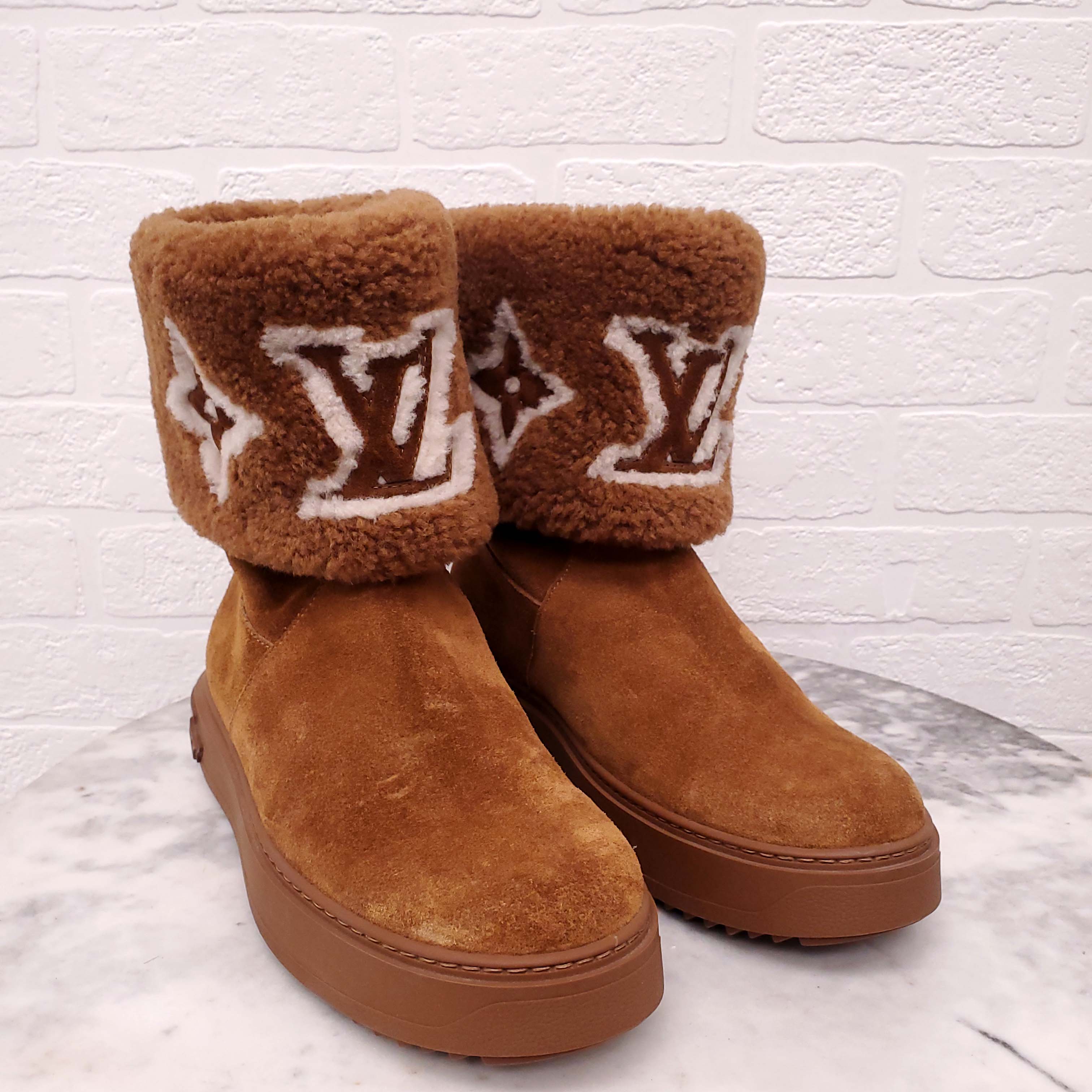 LOUIS VUITTON SHEARLING LOGO BOOTS - SIZE 39