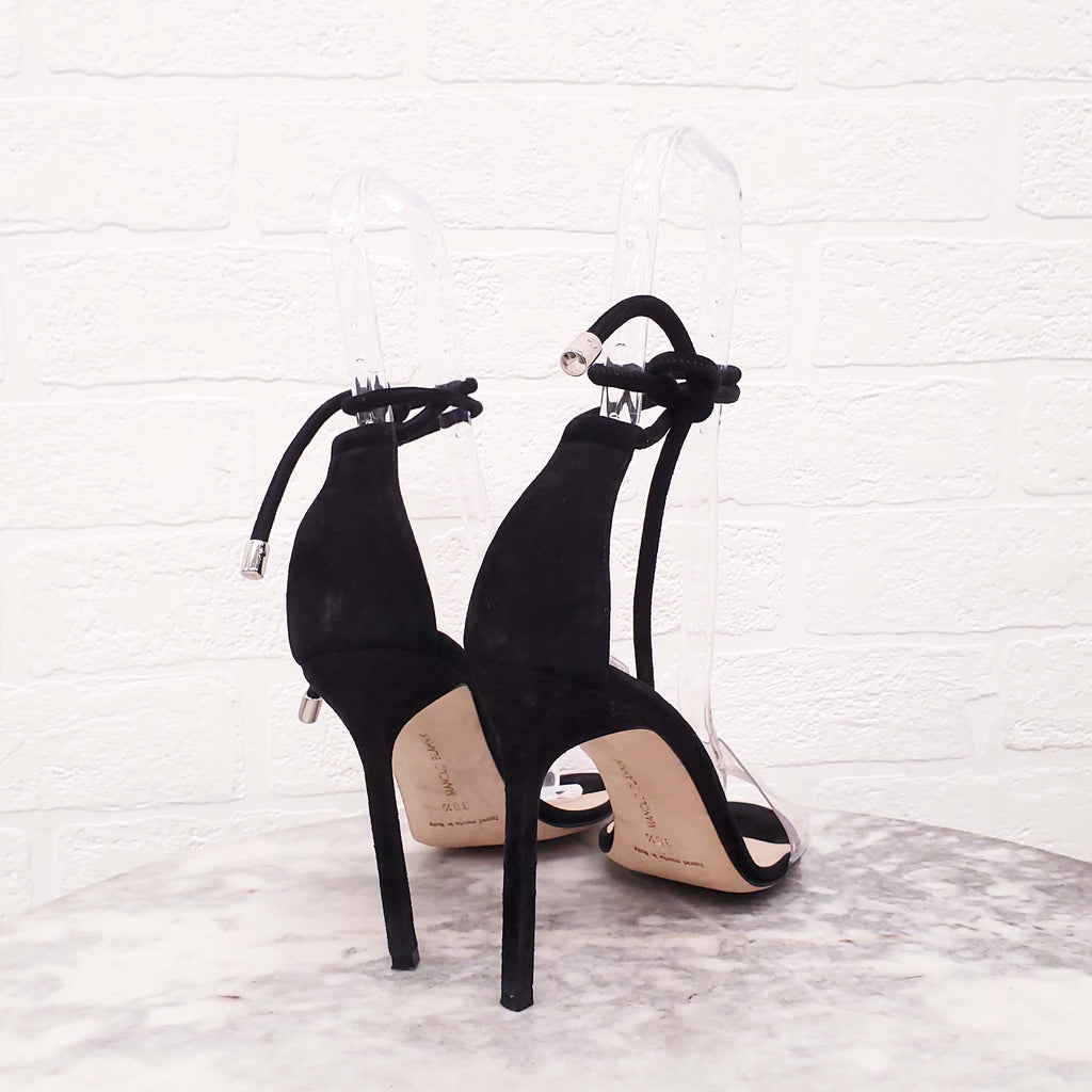 MANOLO BLAHNIK BLACK SUEDE AND PVC HEELS - SIZE 38.5