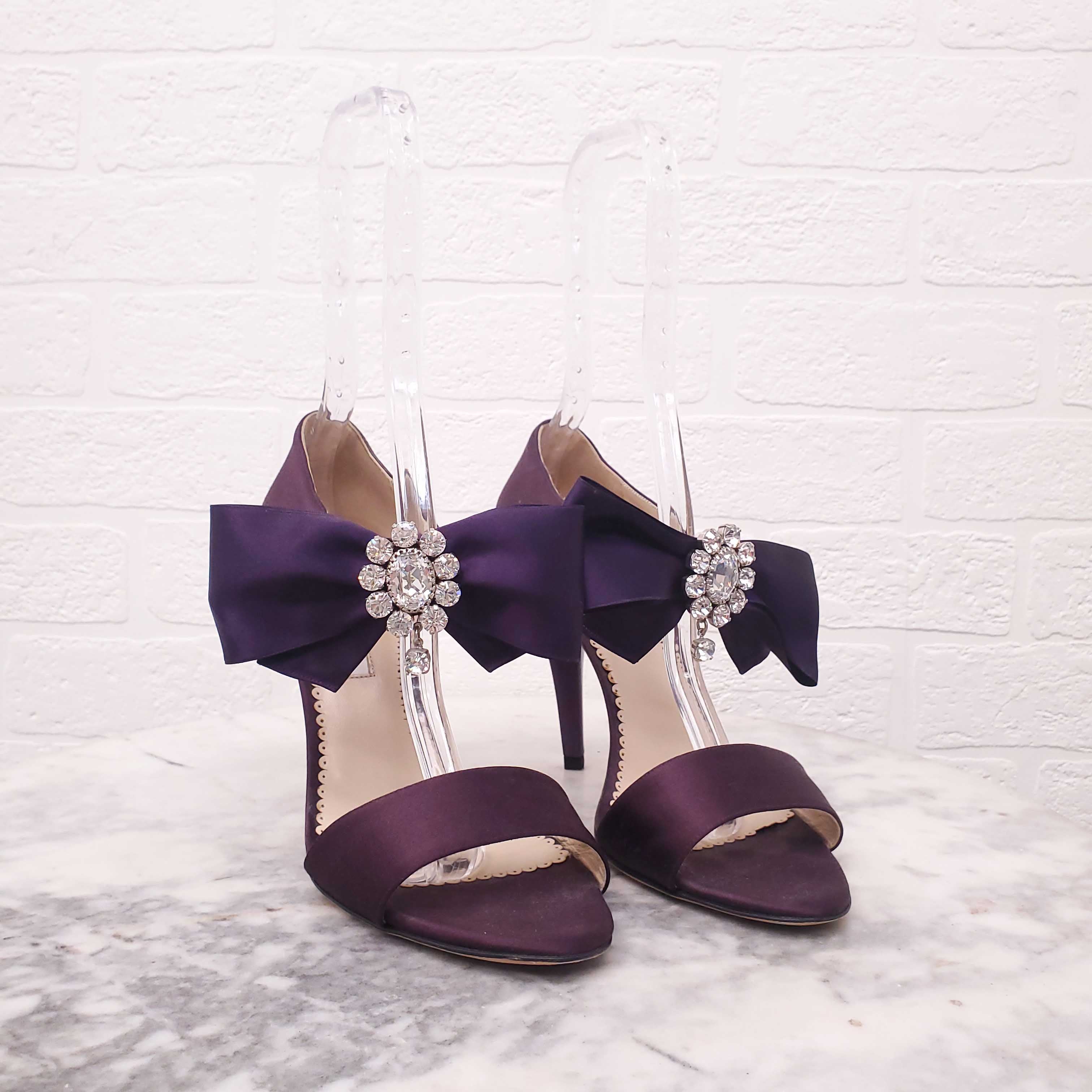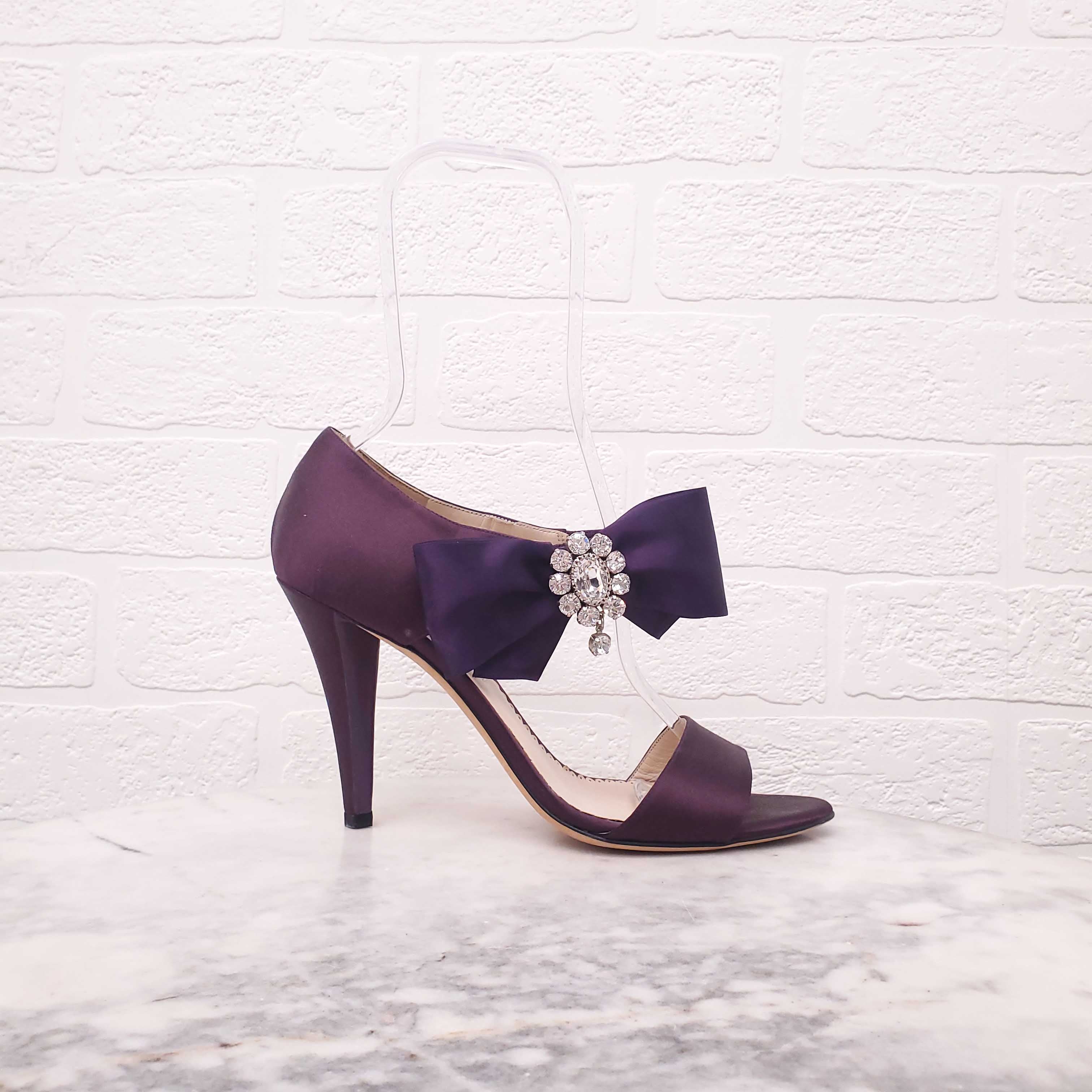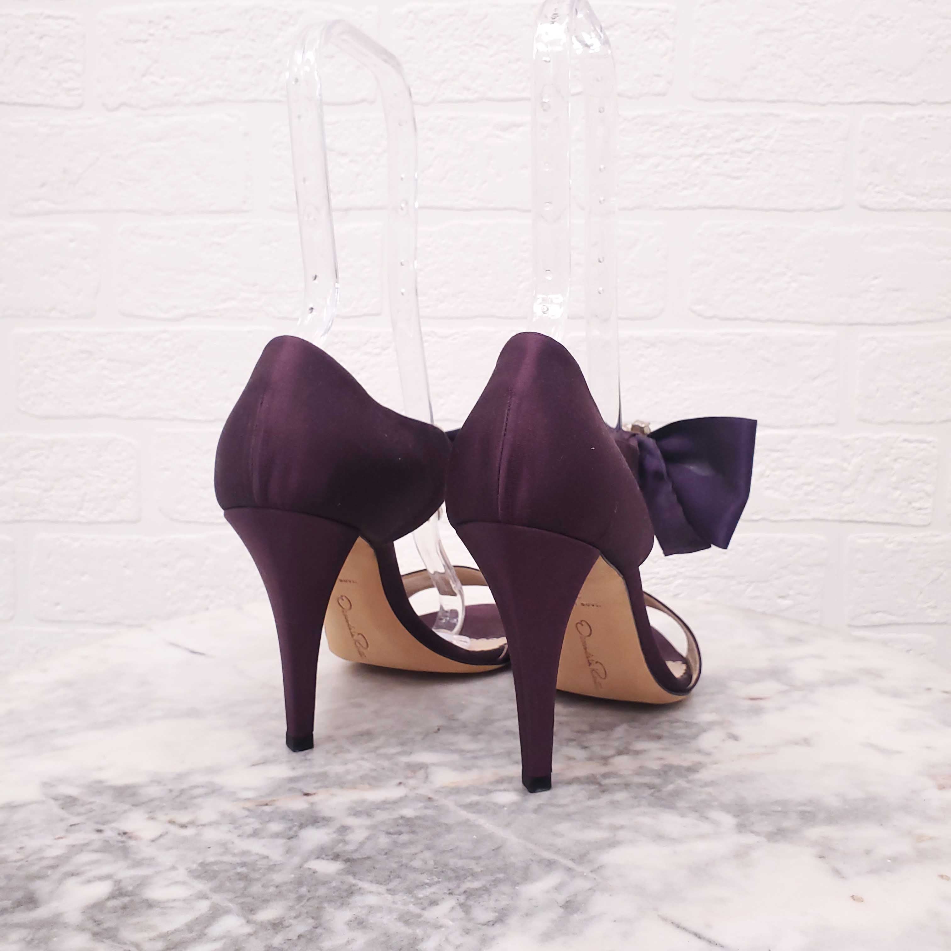 OSCAR DE LA RENTA PURPLE SATIN HEELS WITH CRYSTAL DETAIL - SIZE 38.5