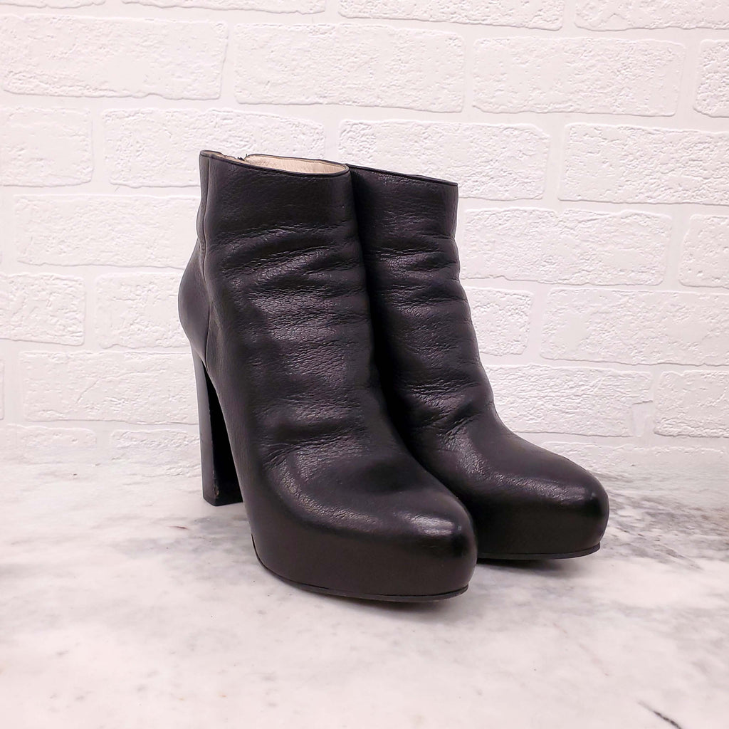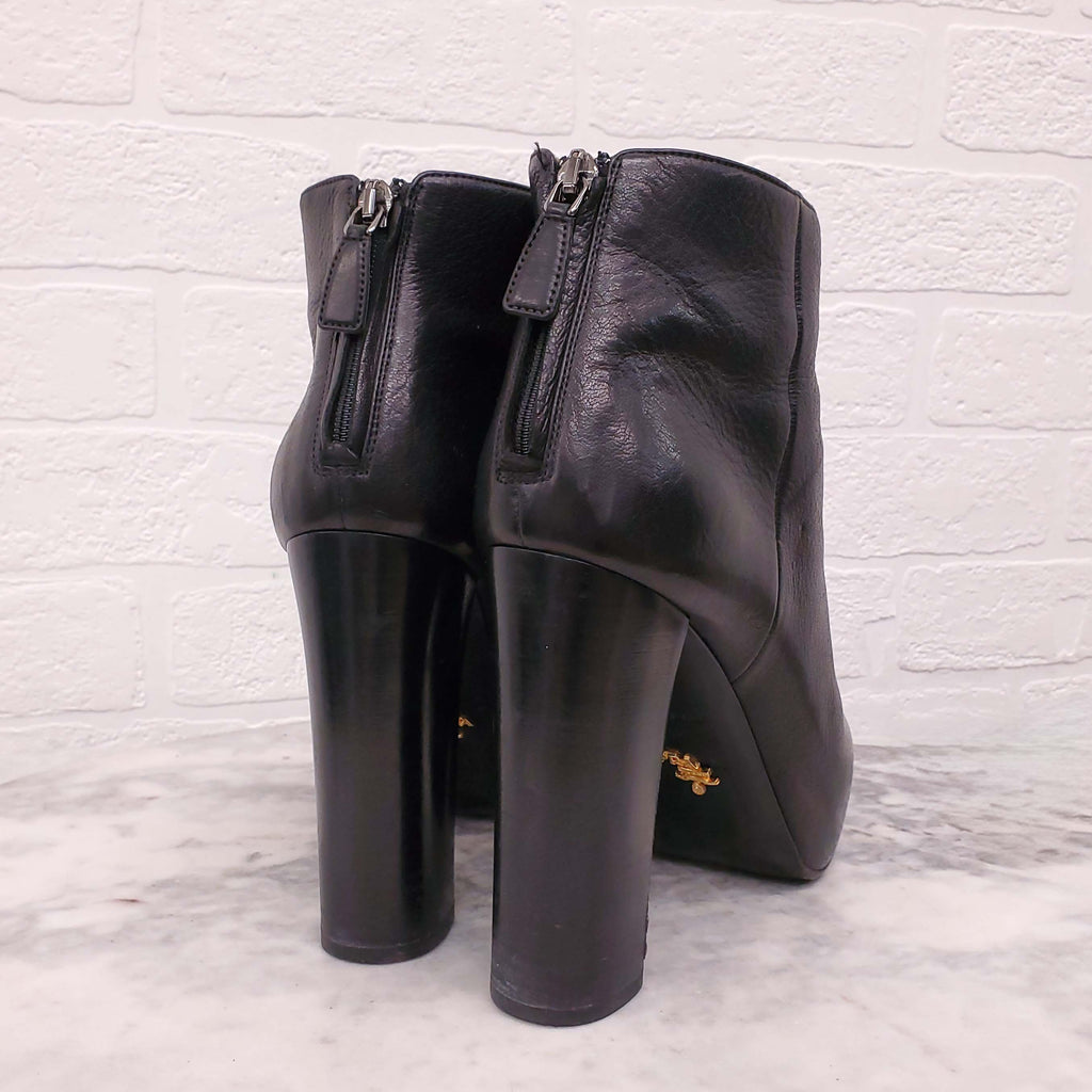PRADA BLACK LEATHER BLOCK BOOTIES - SIZE 38.5