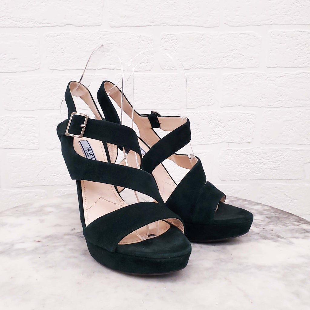 PRADA FOREST GREEN SUEDE HEELS - SIZE 39