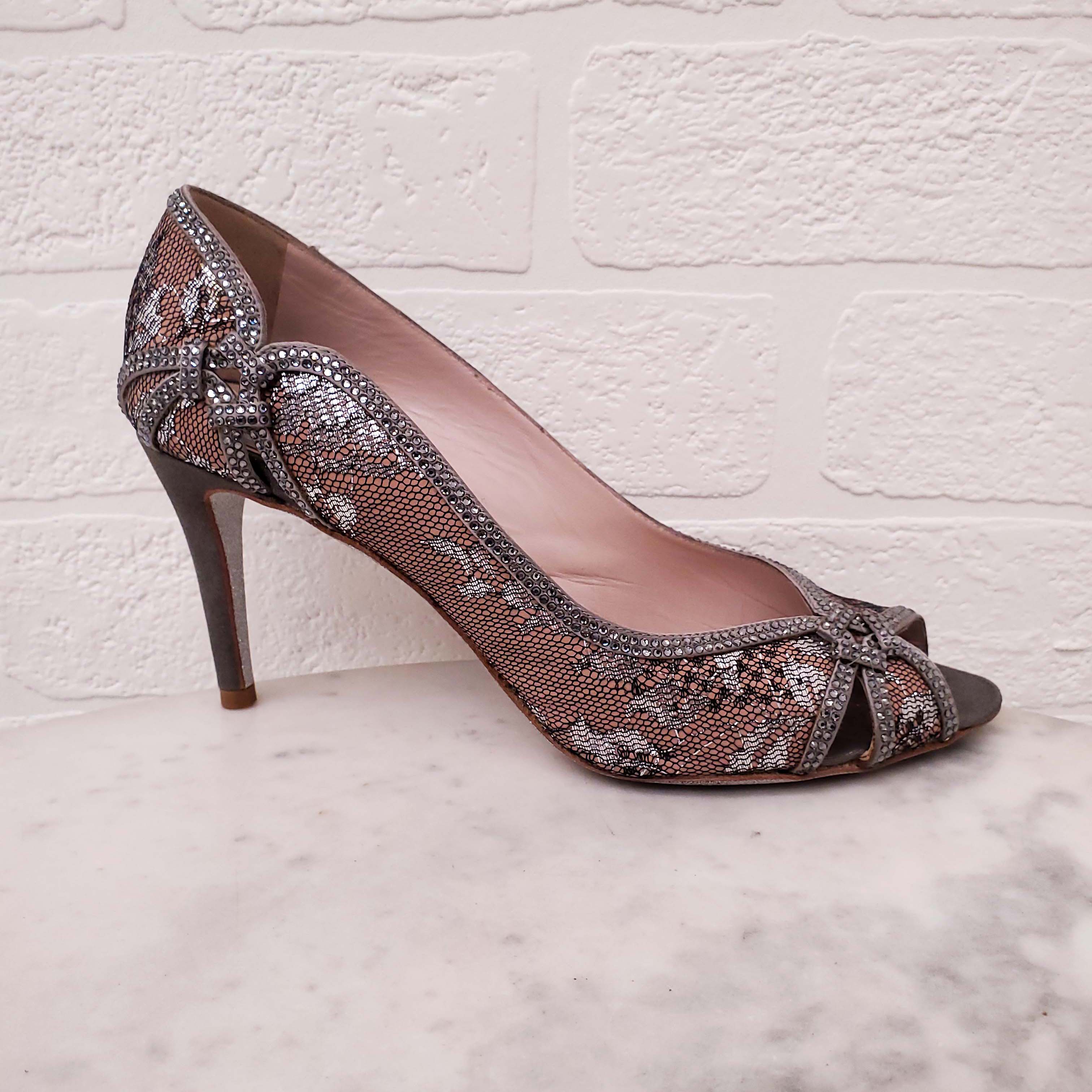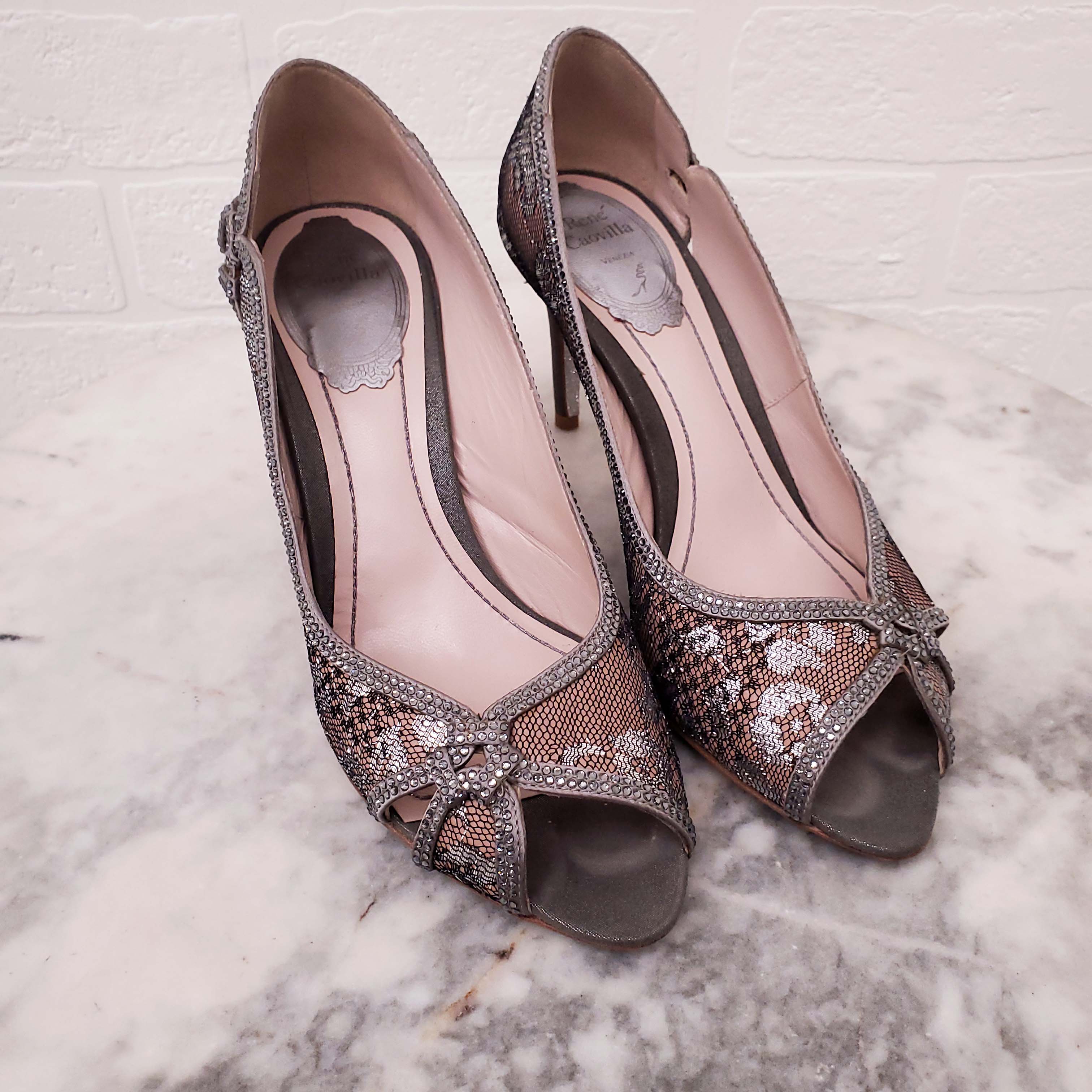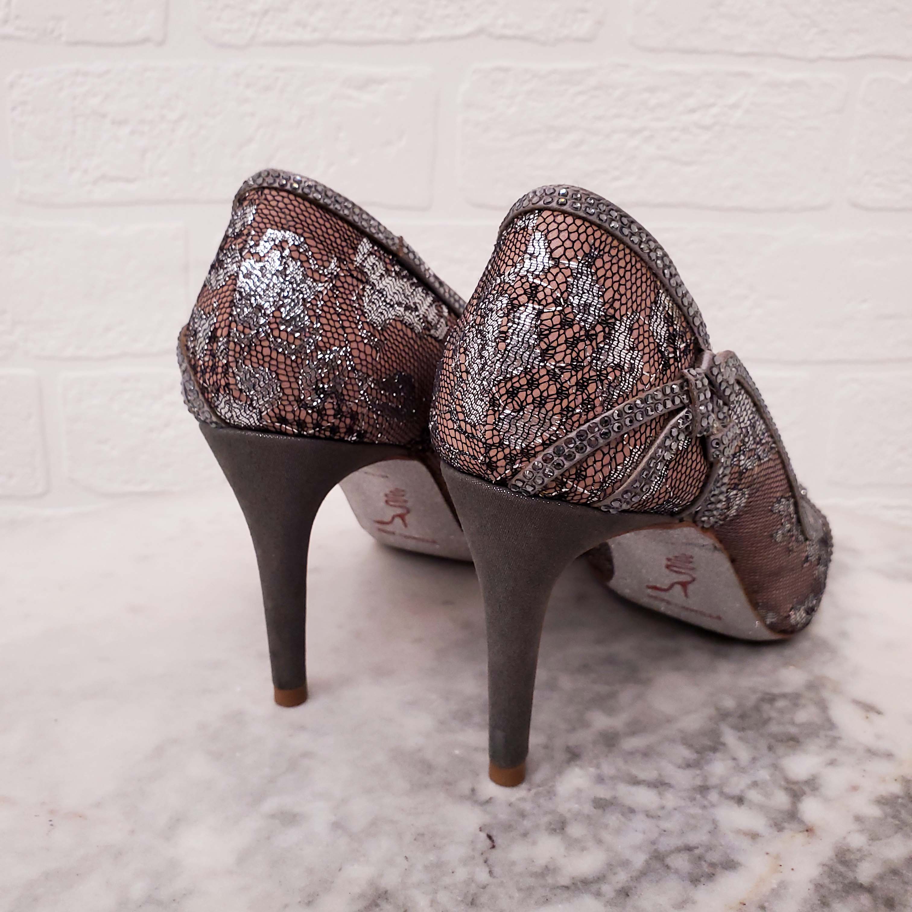 RENE CAOVILLA SILVER SEQUIN HEELS - SIZE 36