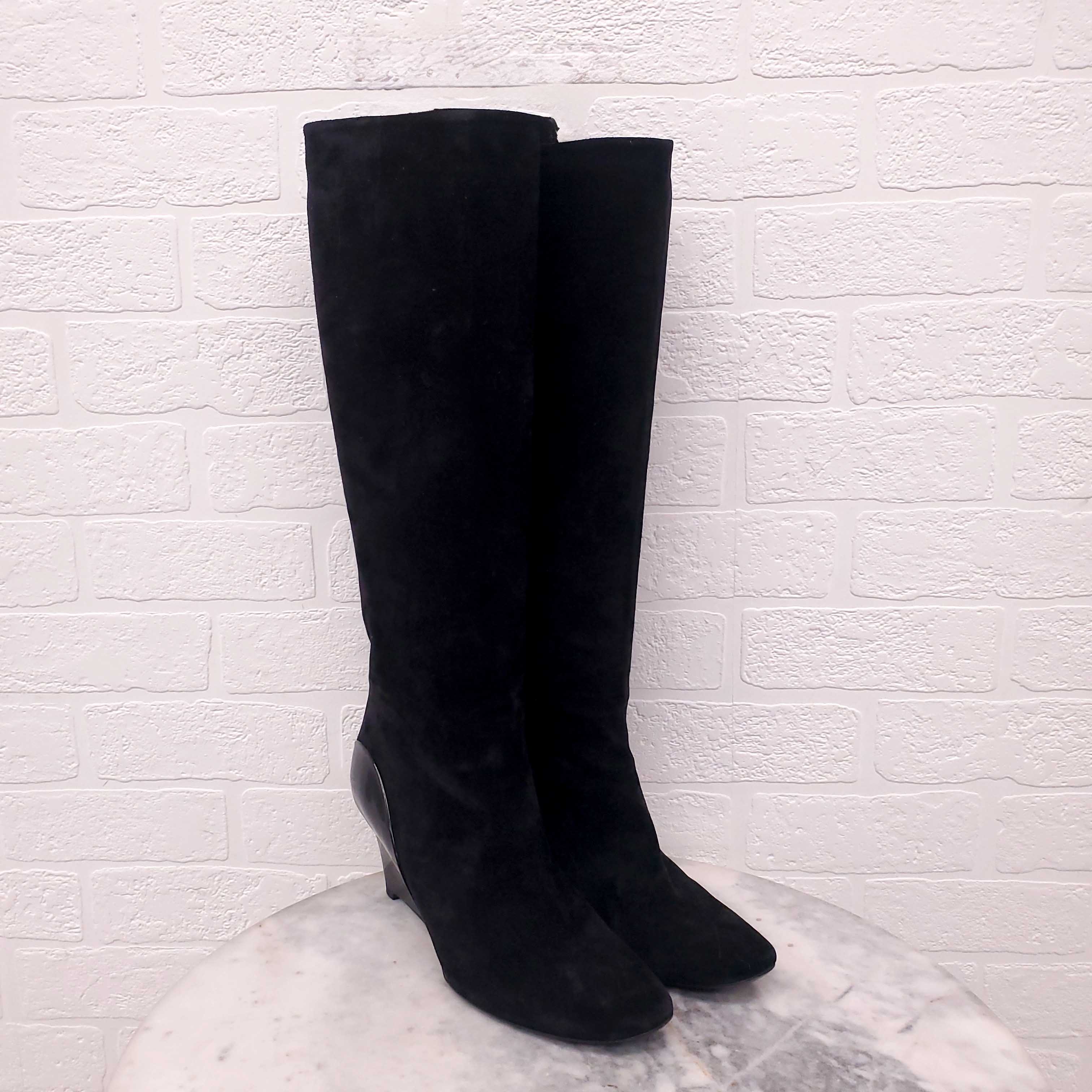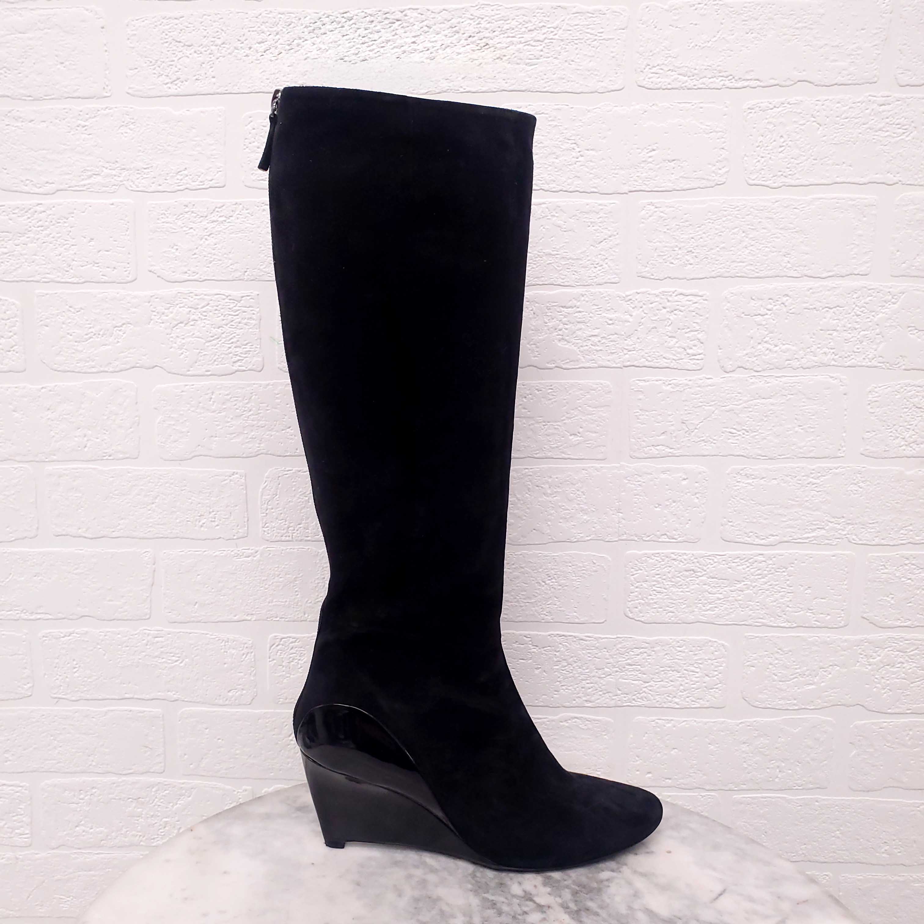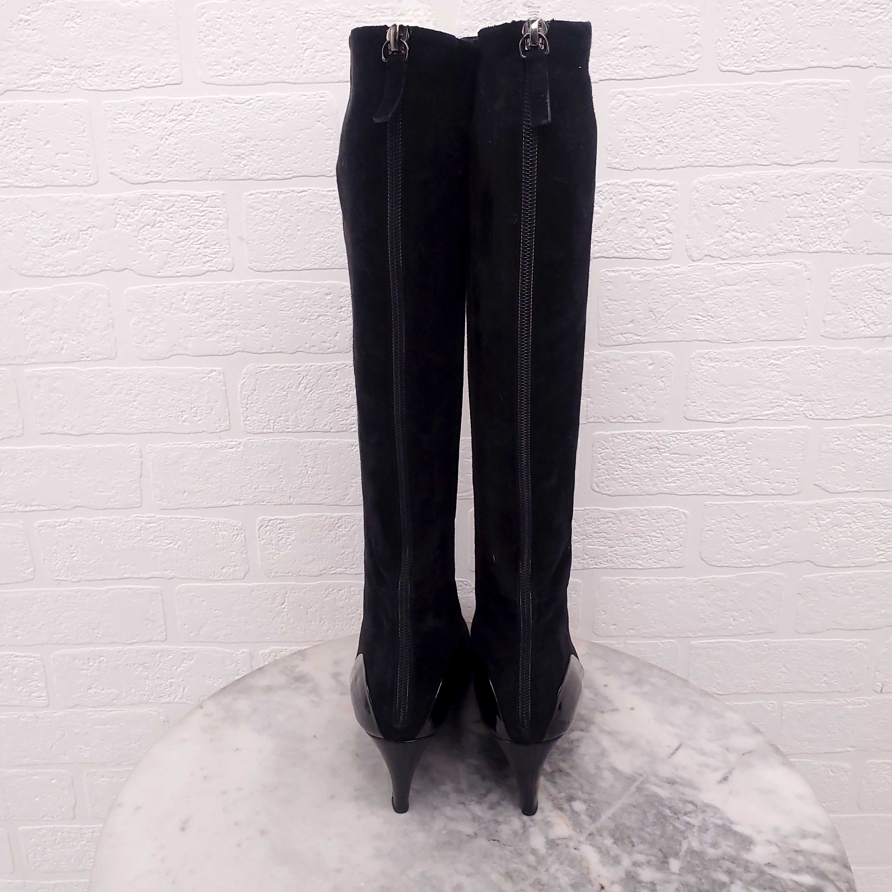 ROGER VIVIER BLACK SUEDE BOOTS WITH BLACK PATENT DETAIL - SIZE 38