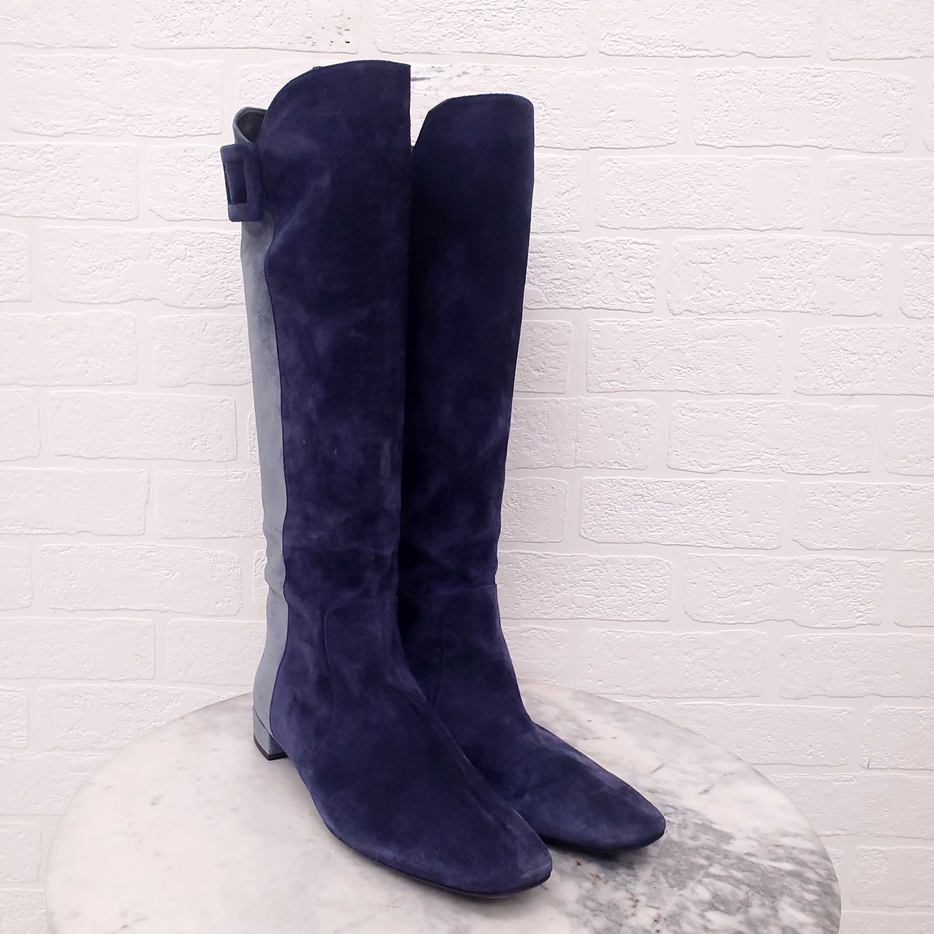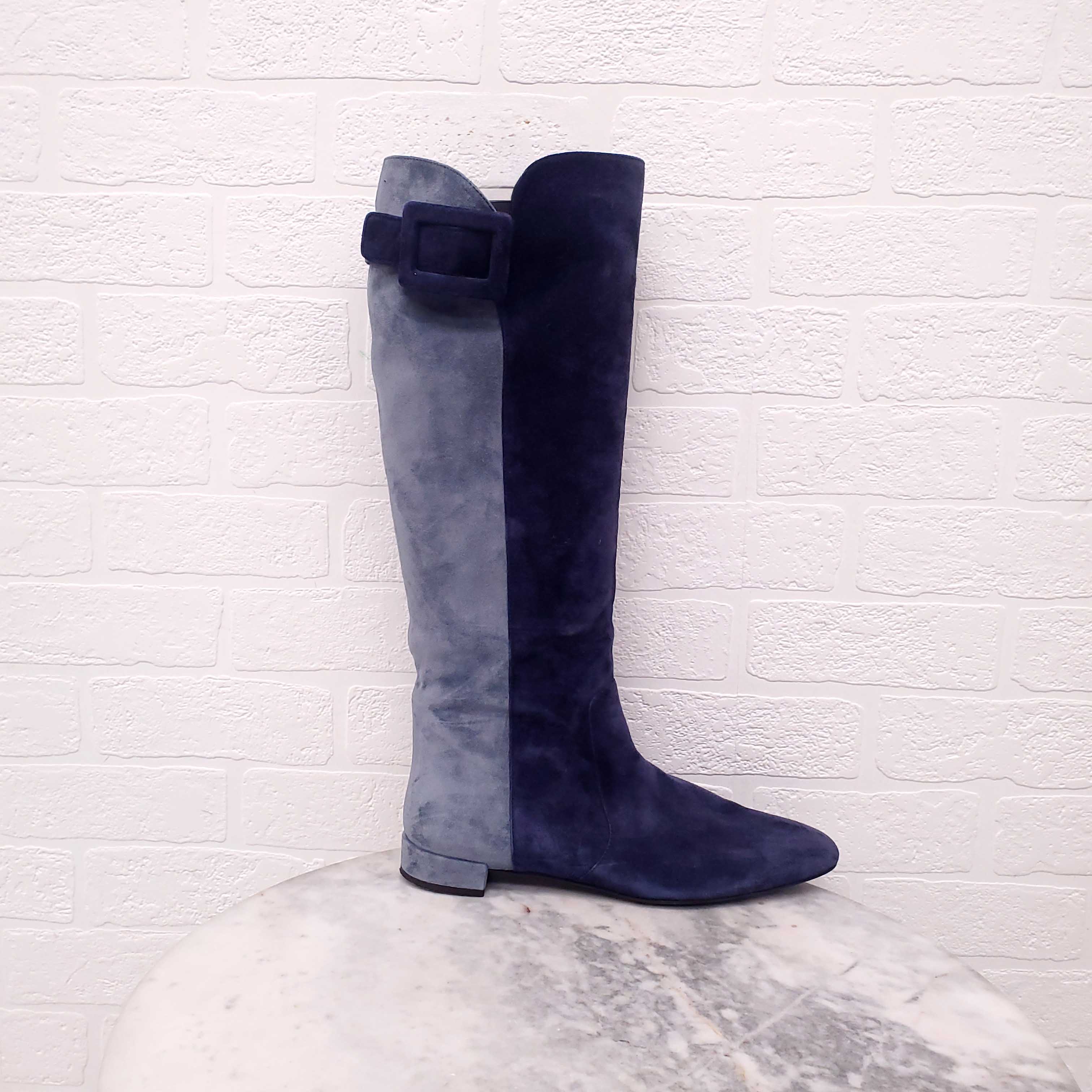 ROGER VIVIER BLUE AND NAVY 2- TONE SUEDE BOOTS - SIZE 40