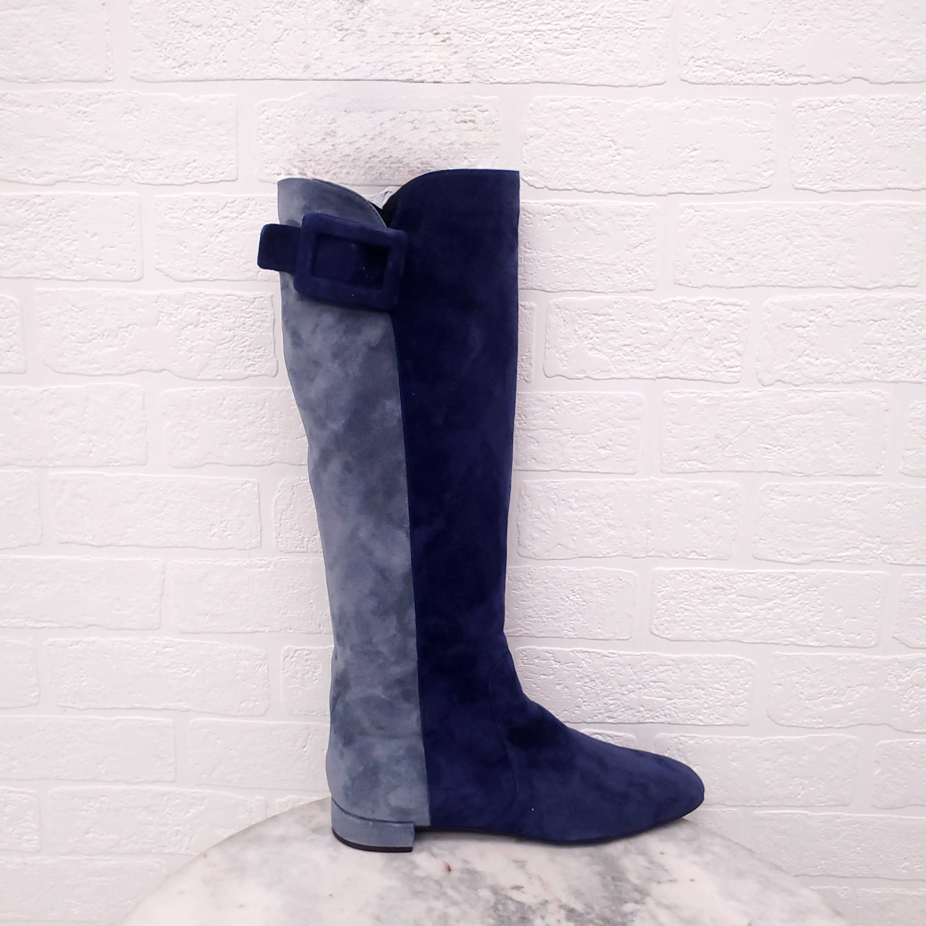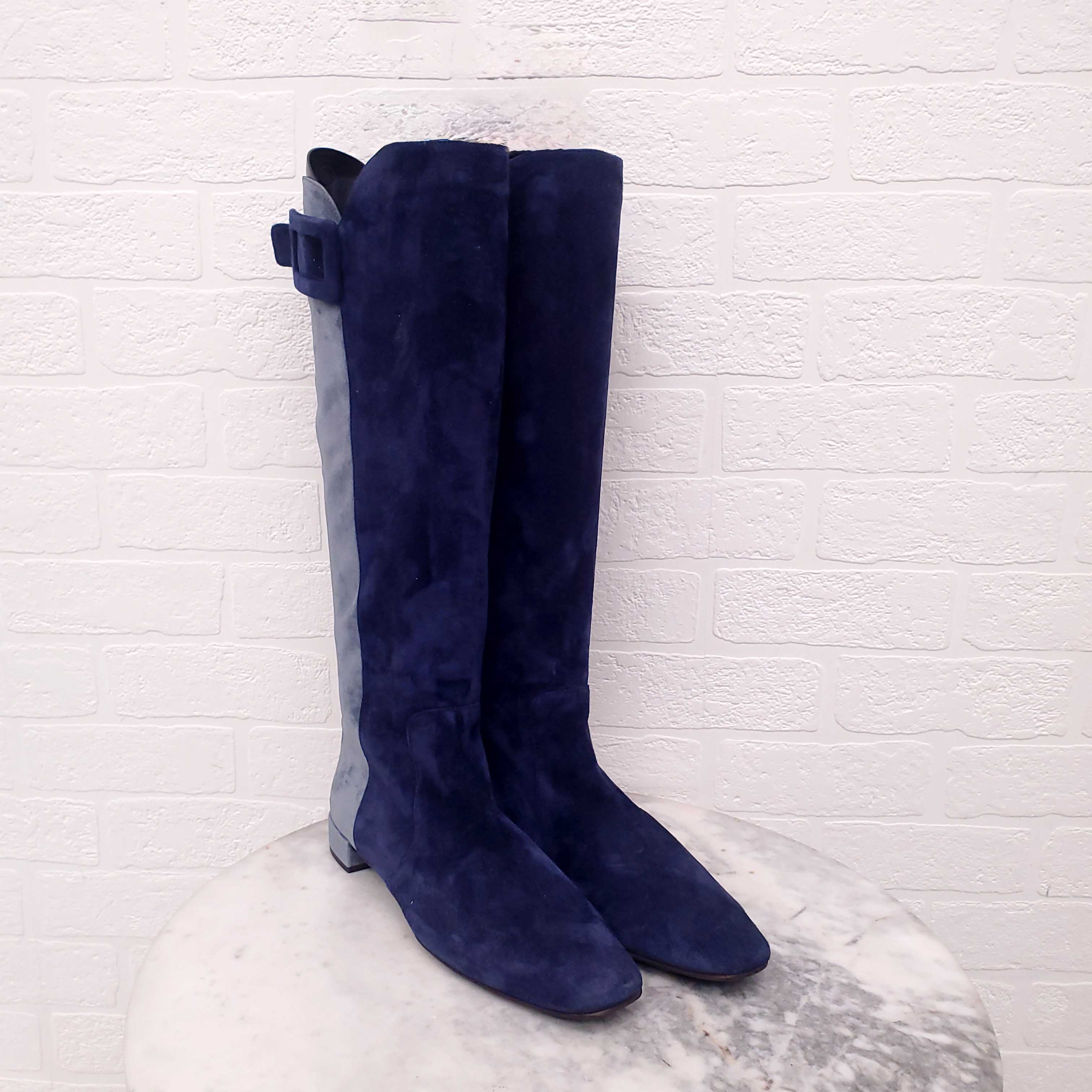 ROGER VIVIER BLUE AND NAVY 2- TONE SUEDE BOOTS - SIZE 38.5