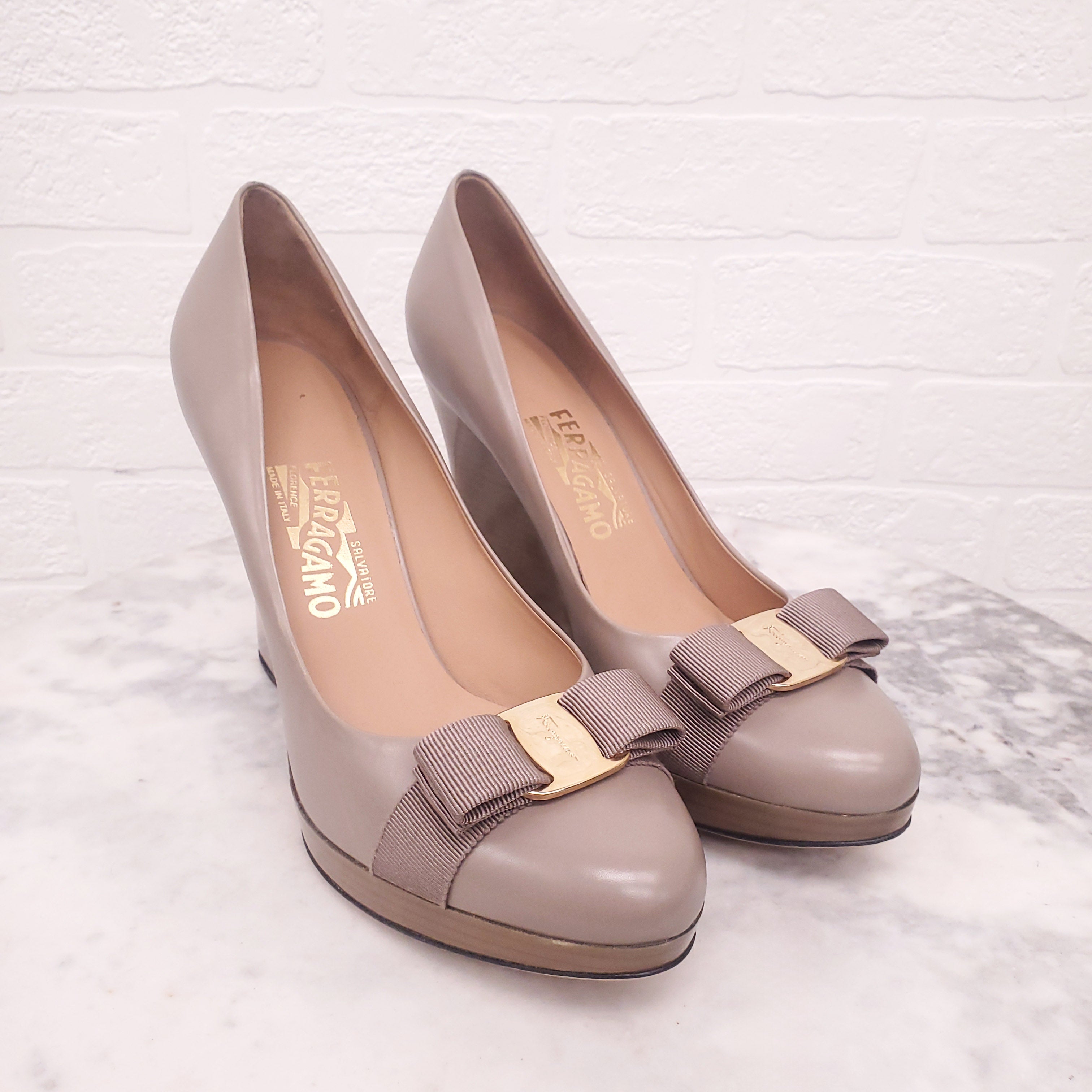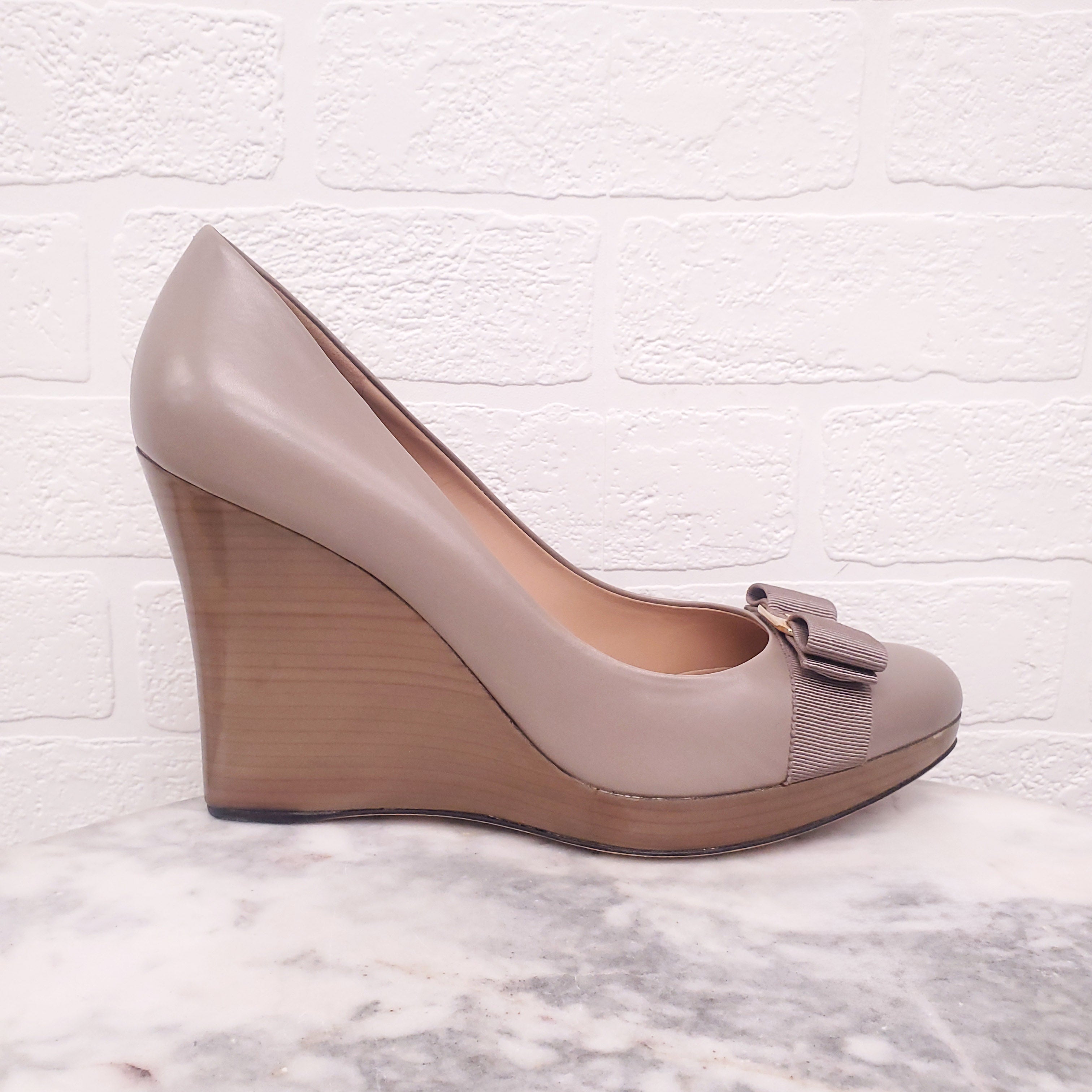 SALVATORE FERRAGAMO LEATHER WEDGES - SIZE 10B