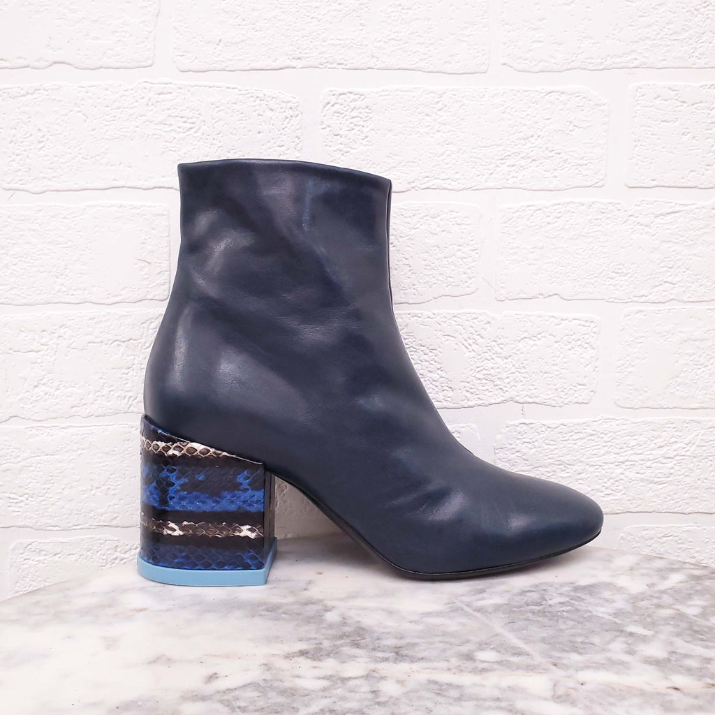 KENZO BLUE LEATHER BOOTS WITH SNAKESKIN BLOCK HEEL - SIZE 38