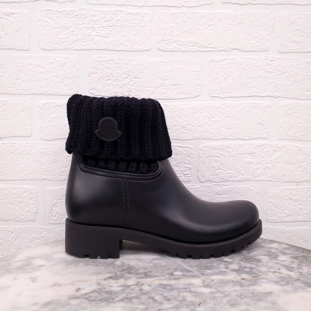 MONCLER BLACK RUBBER LOGO RAIN BOOTS - SIZE 38