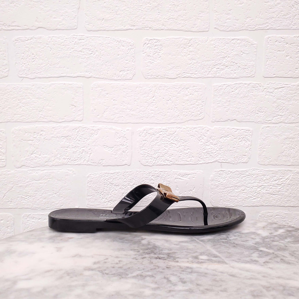 SALVATORE FERRAGAMO BLACK JELLY FLIP FLOPS WITH BOW - SIZE 8