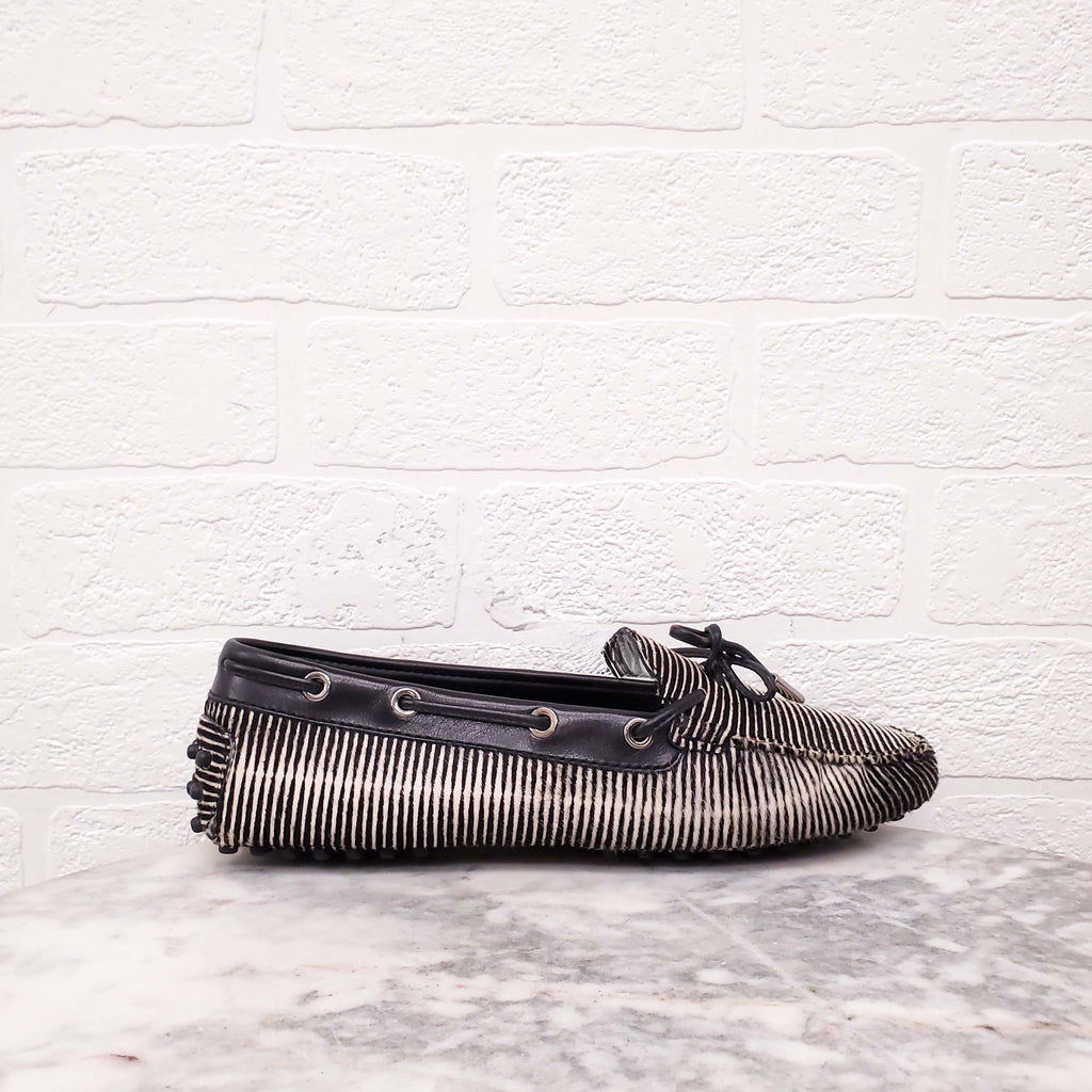 TODS ZEBRA PONY HAIR LOAFERS - SIZE 38.5