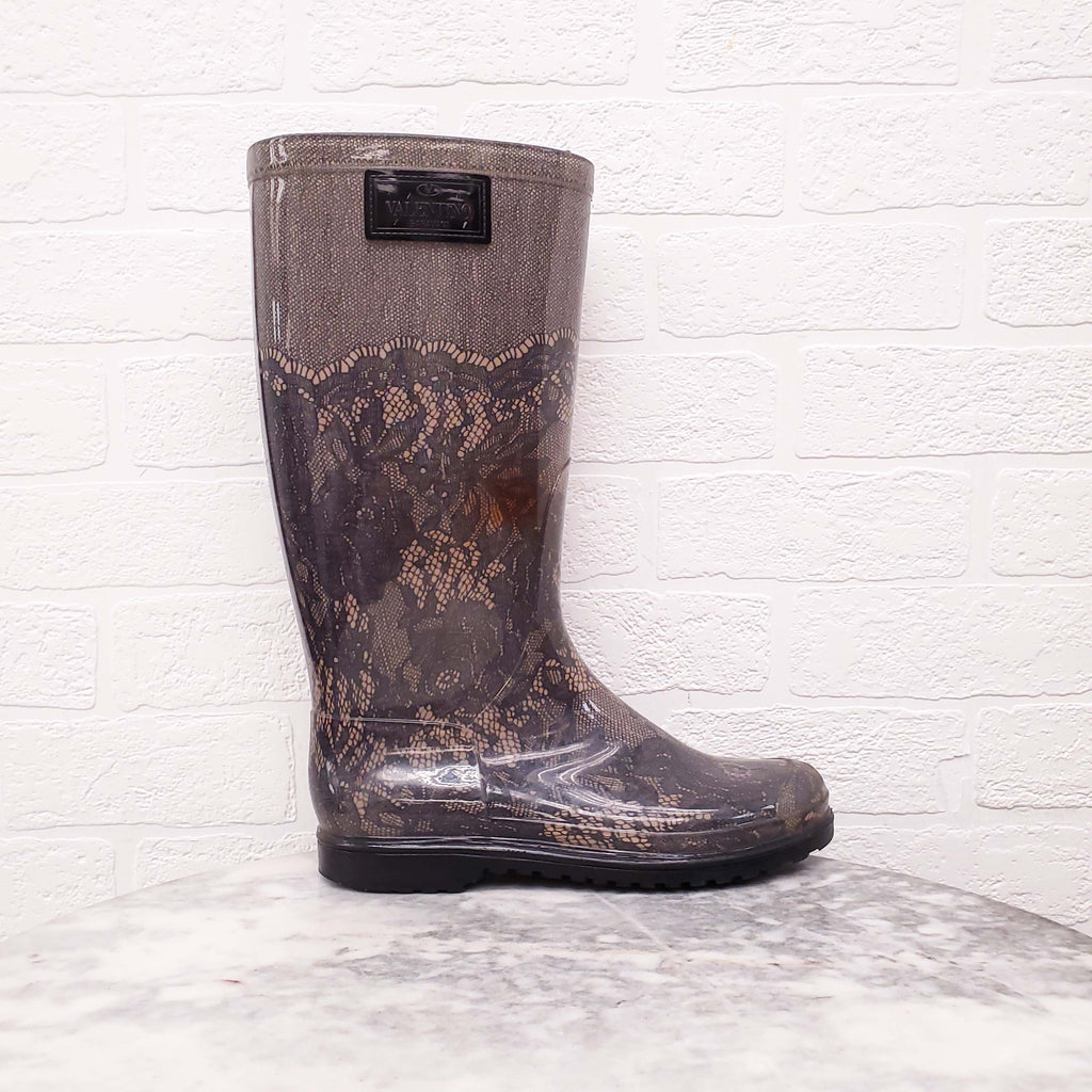 VALENTINO LACE PRINT RUBBER RAIN BOOTS - SIZE 38