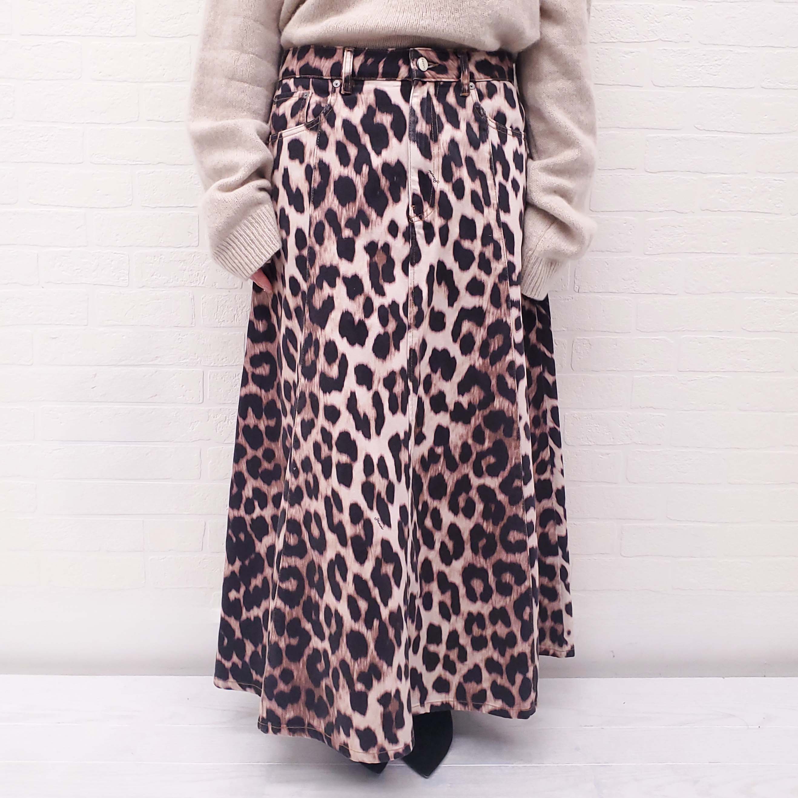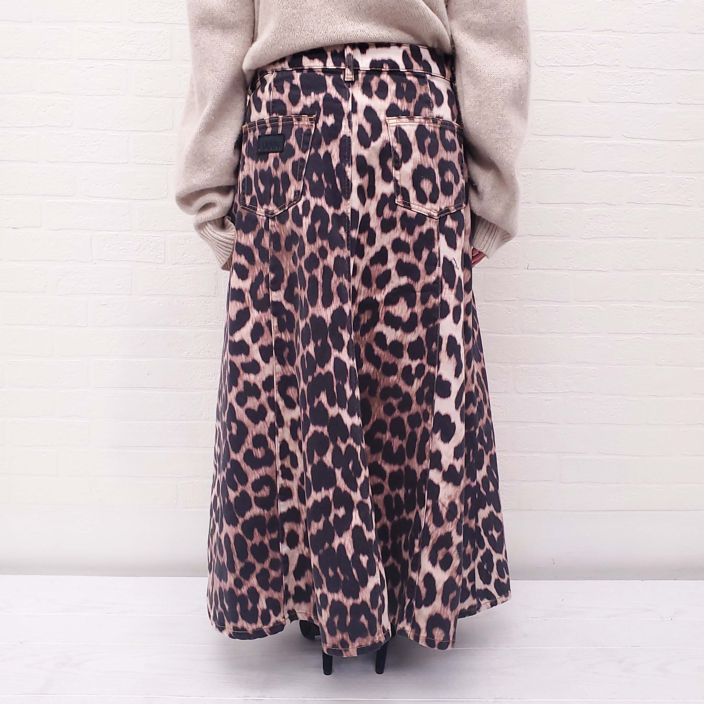 GANNI LEOPARD LOGO DENIM SKIRT - SIZE 42