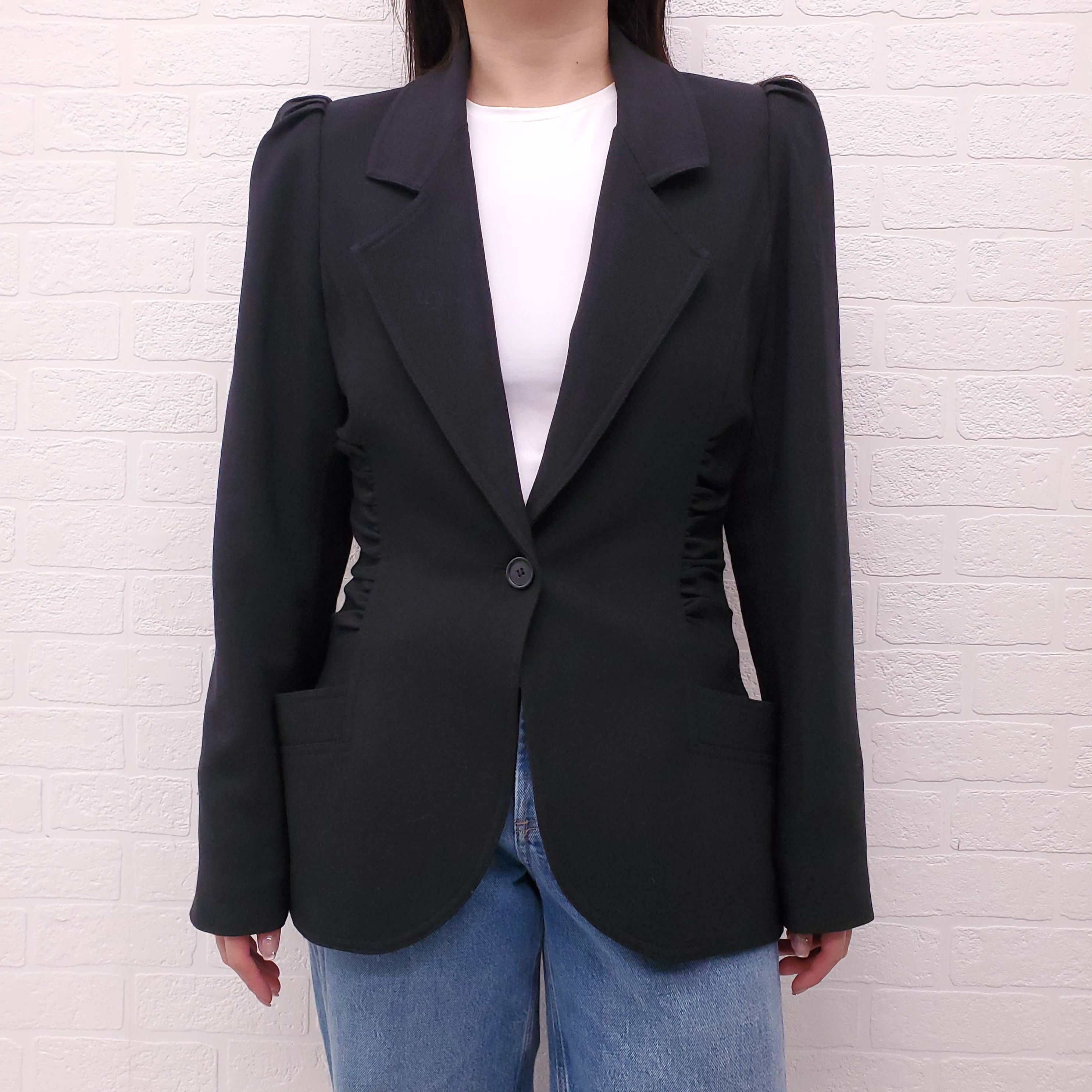 SMYTHE BLACK BLAZER WITH RUCHING DETAIL - SIZE 8