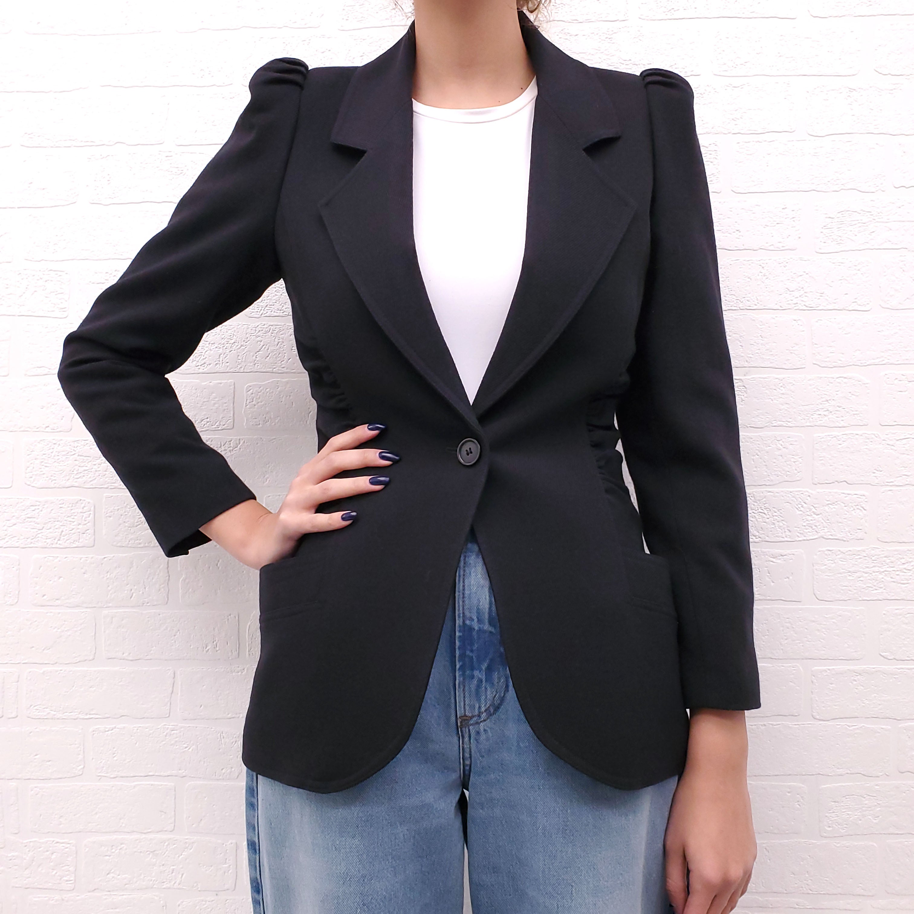 SMYTHE BLACK BLAZER WITH RUCHED CINCHED WAIST DETAIL - SIZE 2