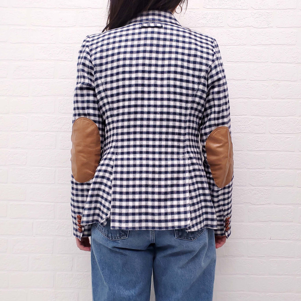 SMYTHE BLUE PLAID BLAZER WITH LEATHER ELBOW PATCHES - SIZE 8