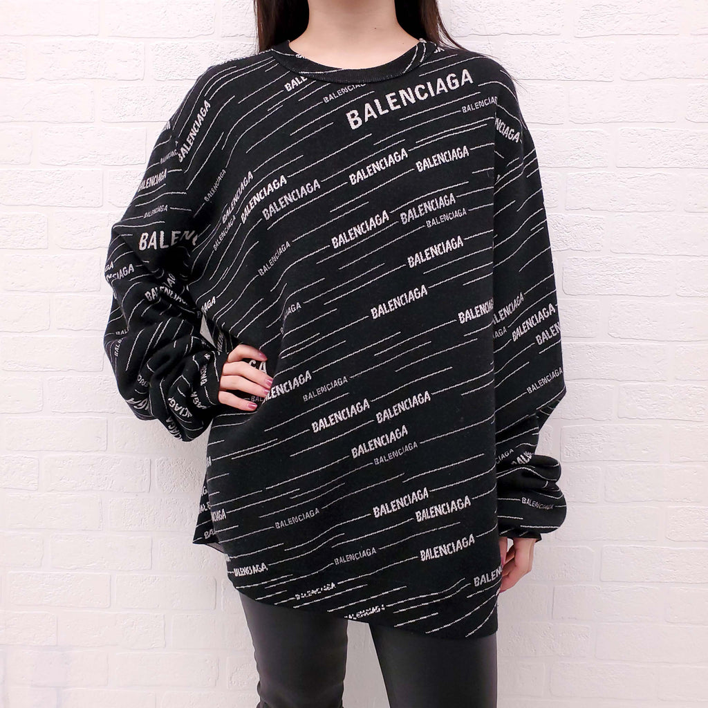 BALENCIAGA BLACK AND GREY STRIPE LOGO SWEATER - SIZE XL