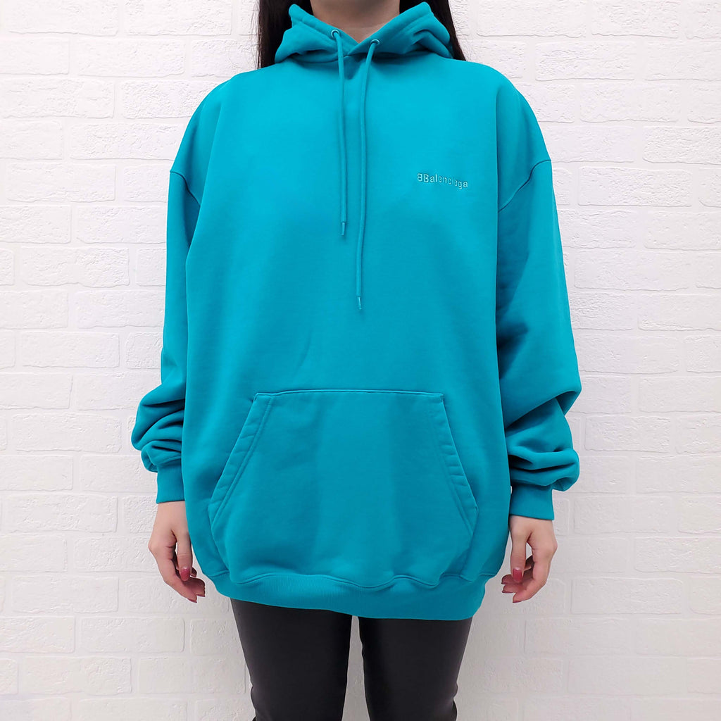 BALENCIAGA OVERSIZED TURQUOISE LOGO SWEATSHIRT - SIZE XS