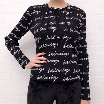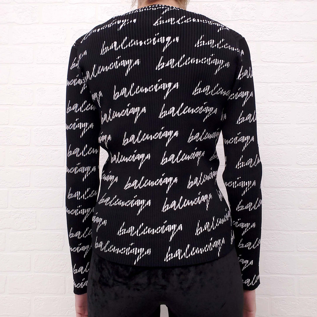 BALENCIAGA BLACK AND WHITE RIBBED CURSIVE LOGO SWEATER - SIZE M