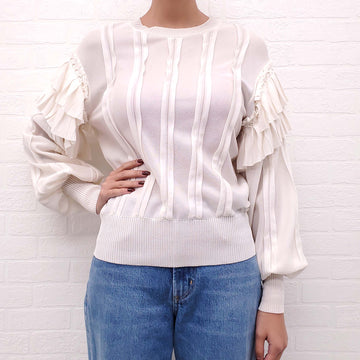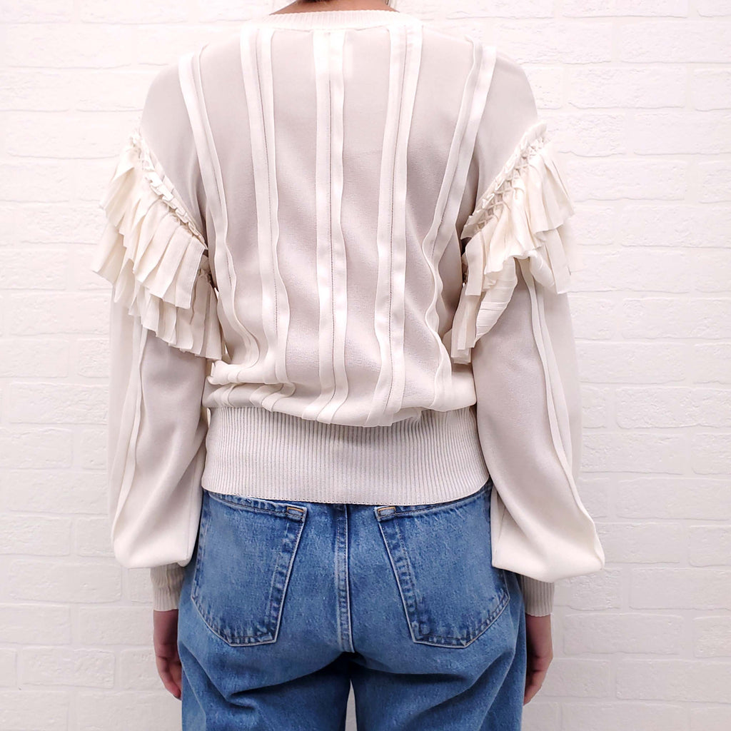 CHANEL CREAM SWEATER WITH RUFFLE SLEEVE - SIZE 34