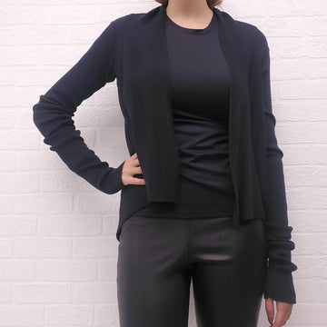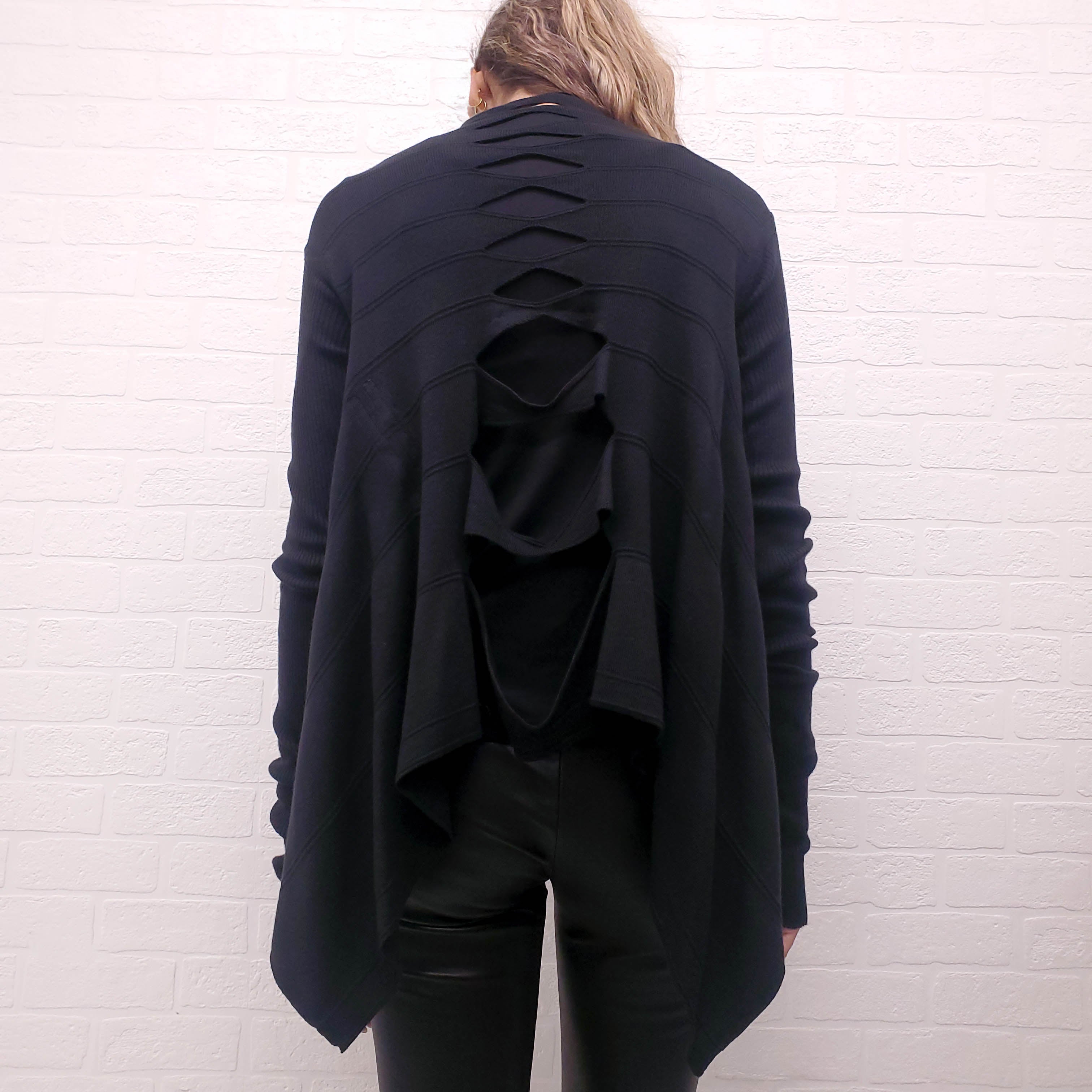 RICK OWENS BLACK DRAPED CARDIGAN WITH CUTOUT DETAIL - SIZE M