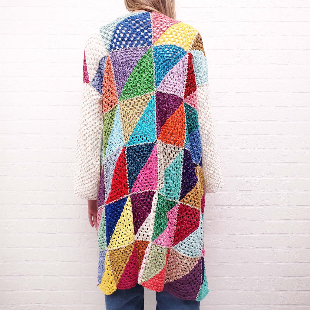 ROSE CARMINE MULTICOLOUR 'COAT DIAGONALES' CROCHET CARDIGAN - O/S