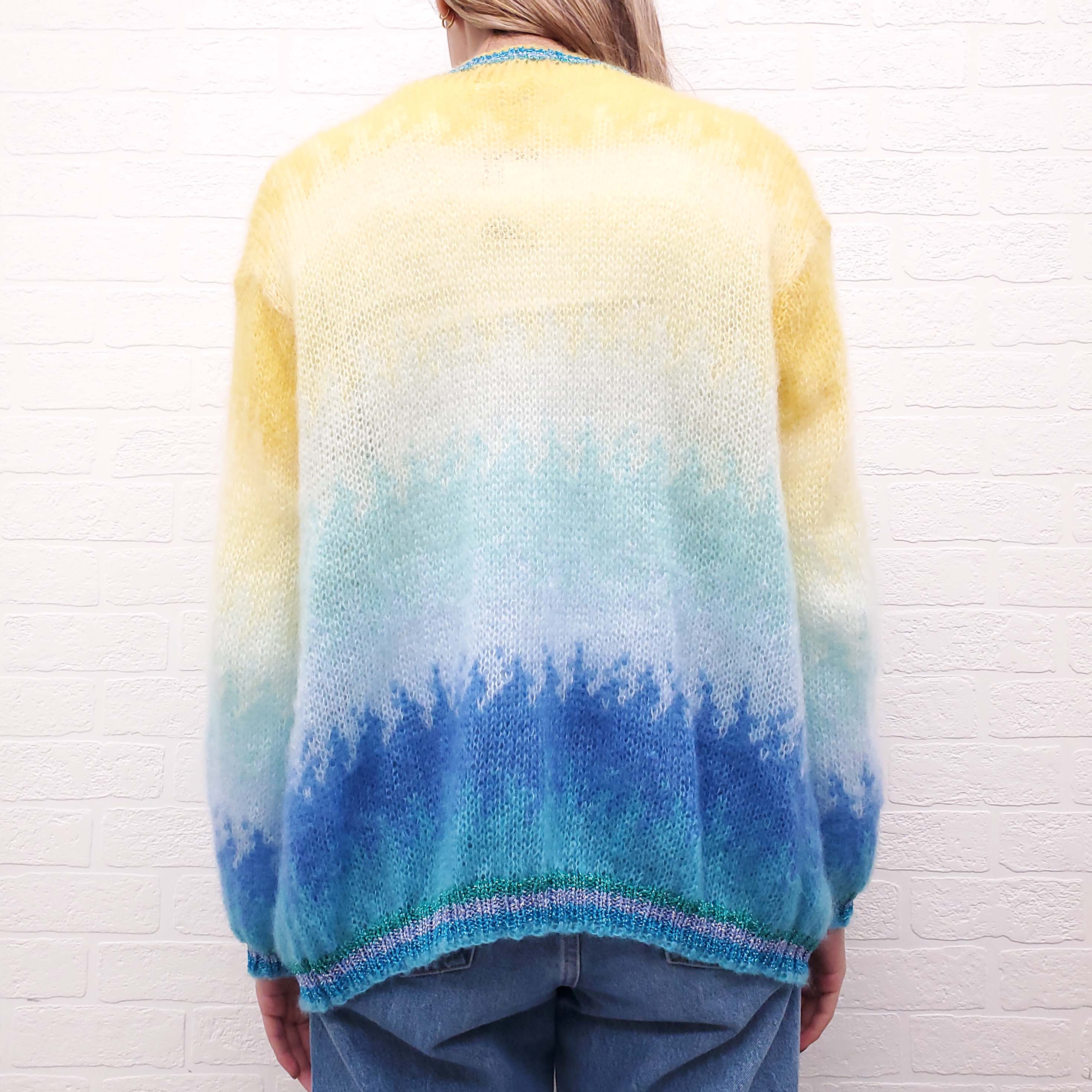 ROSE CARMINE YELLOW AND BLUE OMBRE CROCHET CARDIGAN - O/S